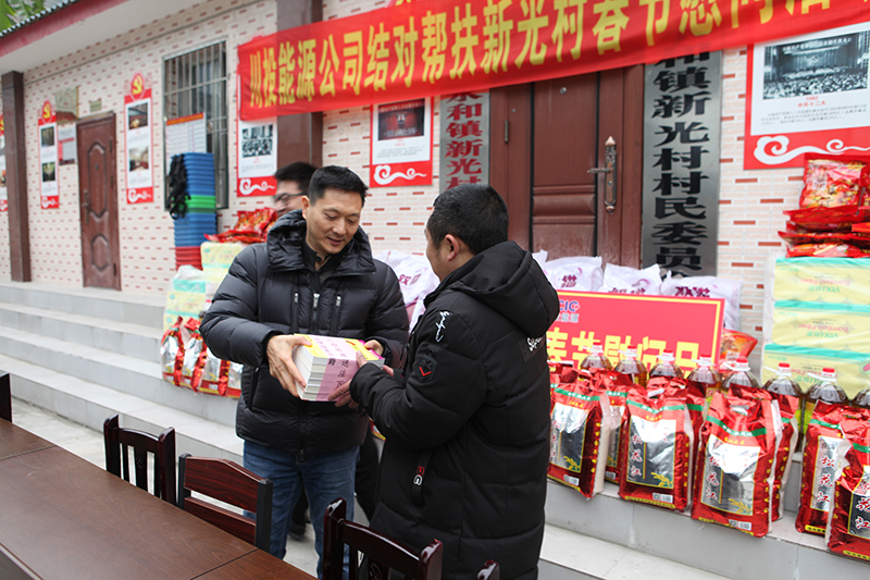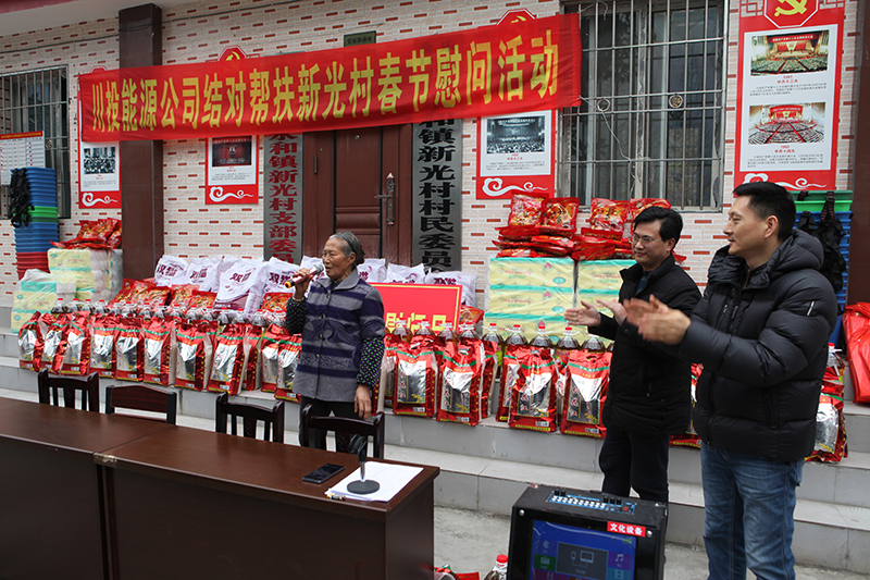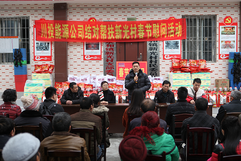 慰問(wèn)現(xiàn)場(chǎng),冉書(shū)記代表公司黨委和全體員工,對(duì)新光村父老鄉(xiāng)親表示誠(chéng)摯的新春祝福和問(wèn)候。冉書(shū)記指出,黨的十九大吹響了全面消滅貧困、實(shí)現(xiàn)小康號(hào)角,經(jīng)過(guò)幾年的努力,川投能源對(duì)口幫扶村面貌煥然一新,這得益于黨和國(guó)家的好政策,得益于扶貧干部和當(dāng)?shù)卮甯刹康墓餐?,得益于廣大鄉(xiāng)親父老的勤勞、智慧和汗水。接下來(lái),川投能源將繼續(xù)深入貫徹中央、省委及集團(tuán)公司精準(zhǔn)脫貧精神,創(chuàng)新扶貧工作思路,提高幫扶工作標(biāo)準(zhǔn),立足實(shí)際,努力為幫扶村群眾辦更多的實(shí)事、好事,以優(yōu)異的工作業(yè)績(jī)喜迎新中國(guó)成立70周年。