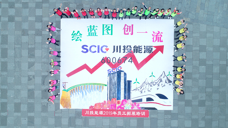 為保障素質(zhì)拓展順利開展,公司認(rèn)真組織、精心籌備,旨在加深提煉公司企業(yè)文化理念,加速新老員工溝通磨合,加強(qiáng)隊伍協(xié)作互信。培訓(xùn)過程中,全體參訓(xùn)人員被隨機(jī)分成四組,大家定隊名、呼口號、唱隊歌,一一展示團(tuán)隊風(fēng)采,個個激情滿懷、斗志昂揚(yáng)?;顒又写蠹覉F(tuán)結(jié)協(xié)作、你追我趕、奮力拼搏、難分伯仲,其中最振奮人心的項目是“共繪藍(lán)圖”。隊員們分別在四塊畫布上勾勒、設(shè)計、涂色,有的負(fù)責(zé)統(tǒng)籌安排,有的負(fù)責(zé)色彩調(diào)配,有的負(fù)責(zé)勾勒初描,有的負(fù)責(zé)著色上色,大伙兒熱火朝天,忙得不亦樂乎。當(dāng)我們親手繪制的四塊畫布首尾相接拼裝成整幅“藍(lán)圖”的剎那,大家不禁歡呼雀躍起來:首先躍入眼簾的是象征川投能源股票長紅的紅色箭頭,以及“川投能源”LOGO和股票代碼;畫布正上方醒目的“繪藍(lán)圖、創(chuàng)一流”標(biāo)語亮出了此次活動主題和企業(yè)愿景;畫布正中央是高高聳立的川投大廈,四周花團(tuán)錦簇,象征著各所屬公司在川投集團(tuán)領(lǐng)導(dǎo)下百花齊放、大放異彩。畫布四周還有雄偉的水電大壩,高速前行的“復(fù)興號”,象征新能源的風(fēng)力發(fā)電機(jī)組……那一刻,我們仿佛看到了川投能源創(chuàng)西部一流的愿景已躍然紙上,“千億川投”的宏偉畫卷正徐徐展開。