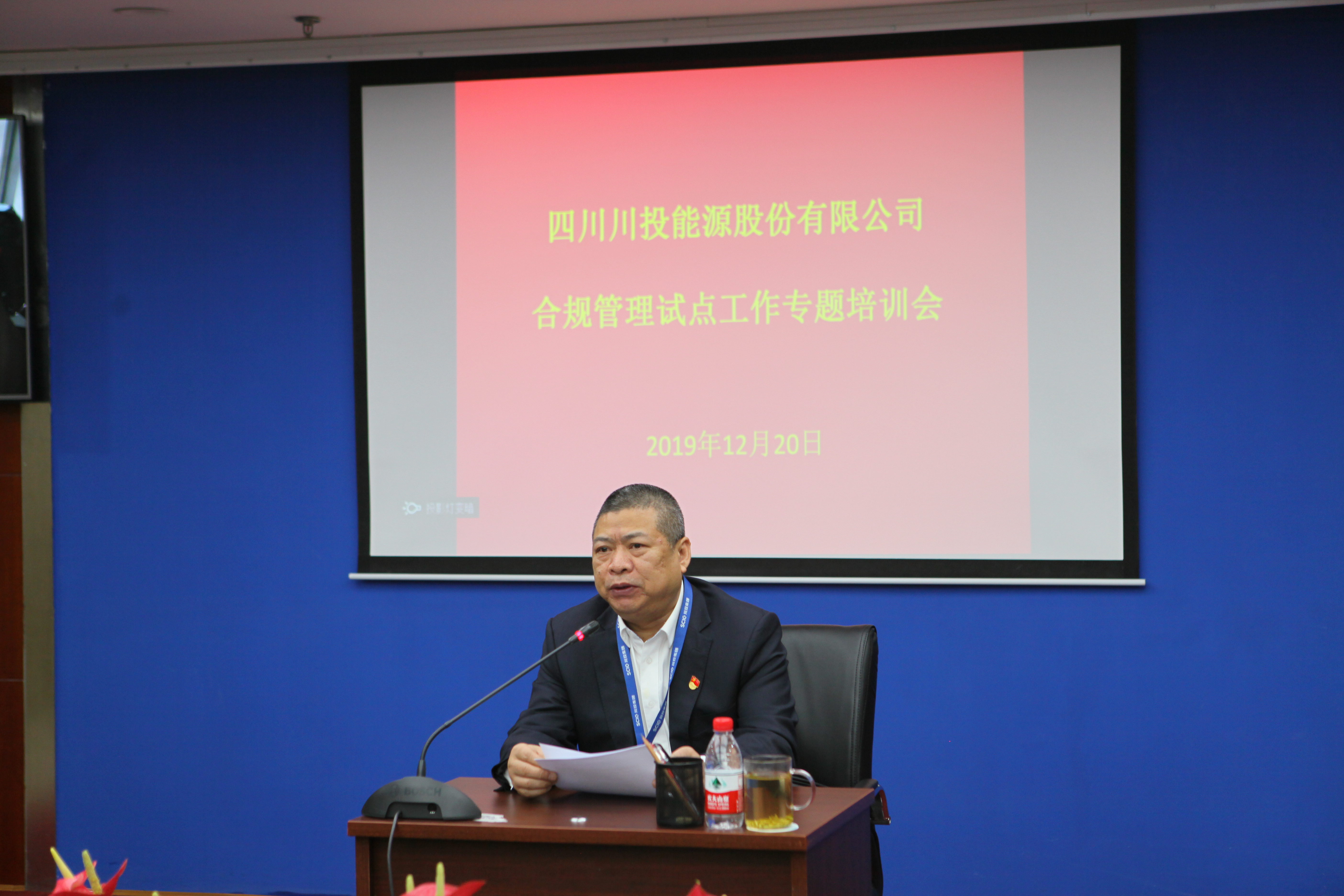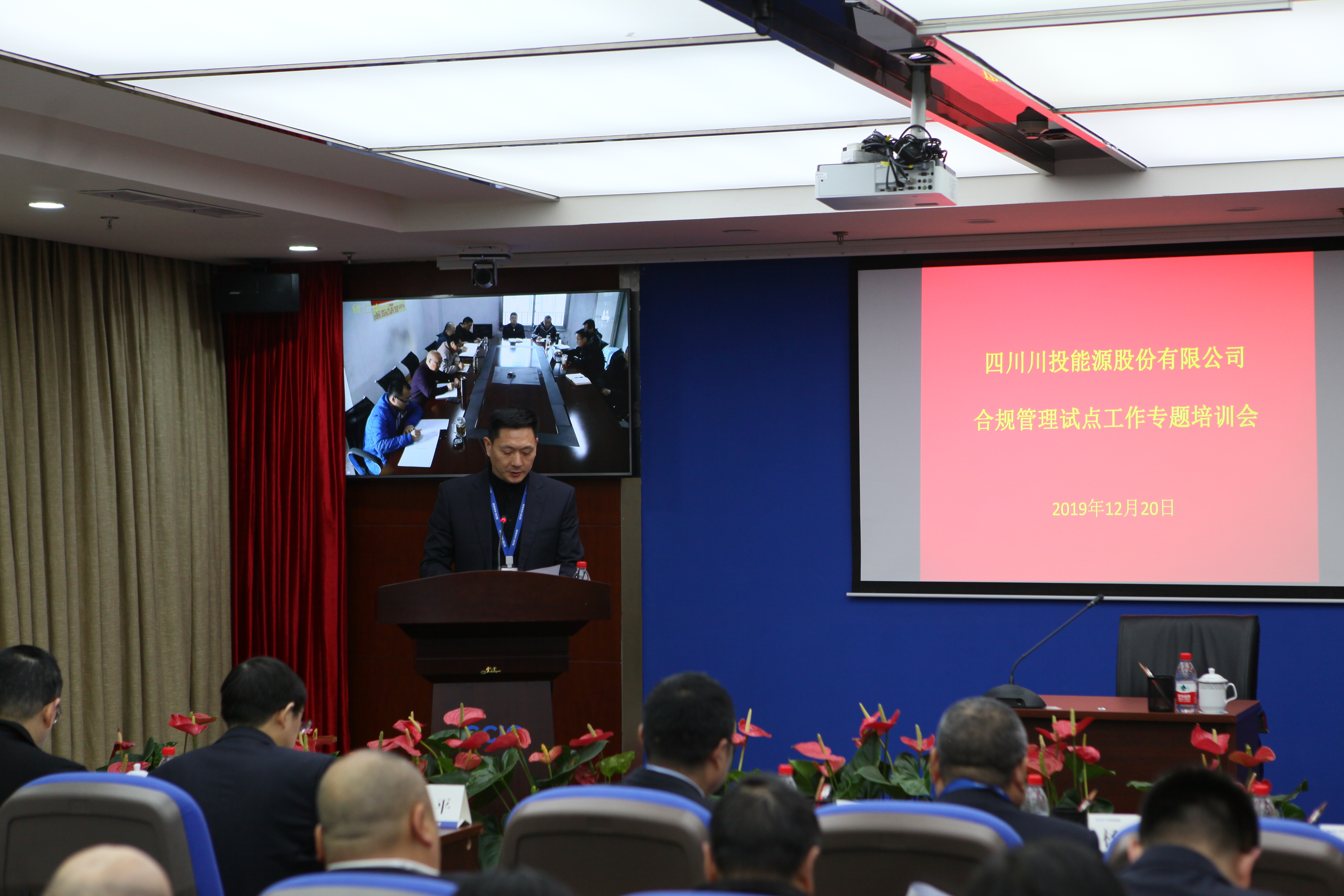 12月20日,川投能源召開合規(guī)管理試點工作專題培訓(xùn)會。公司黨委書記、總經(jīng)理楊洪出席會議并講話,集團(tuán)公司副總法律顧問、法律事務(wù)部部長楊帆同志到會指導(dǎo),公司黨委委員、紀(jì)委書記、總法律顧問冉蘭平主持會議,并宣讀集團(tuán)公司《關(guān)于同意川投能源合規(guī)管理試點工作實施方案的通知》。