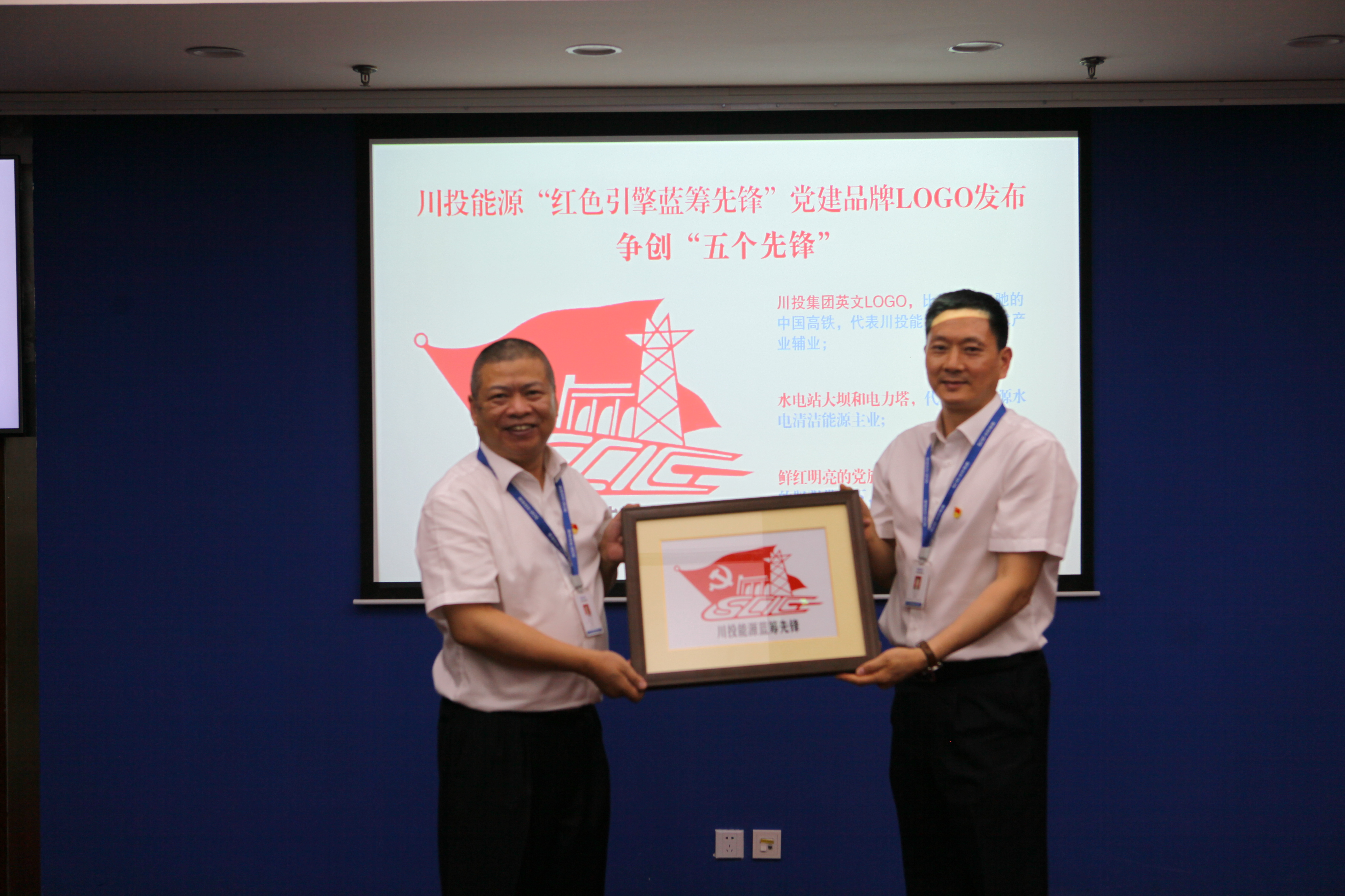 在公司黨建品牌標(biāo)識發(fā)布會上,黨委書記楊洪與紀(jì)委書記冉蘭平共同為黨建品牌標(biāo)識揭牌。在黨建品牌的帶動(dòng)引領(lǐng)下,公司的黨建品牌建設(shè)已經(jīng)形成了“一條主線串,各自放異彩”的良好局面。由川投能源所屬天彭電力黨員莊叢燦設(shè)計(jì)創(chuàng)作的黨建品牌標(biāo)識,要素兼顧、設(shè)計(jì)新穎、要義突出,用川投集團(tuán)英文LOGO,比作急速飛馳的中國高鐵,代表川投能源的高新技術(shù)產(chǎn)業(yè)輔業(yè);水電站大壩和電力塔,代表川投能源水電清潔能源主業(yè);鮮紅明亮的黨旗,喻作風(fēng)帆,寓意在黨的堅(jiān)強(qiáng)帶領(lǐng)下,川投能源乘風(fēng)破浪改革前行的美好景象。