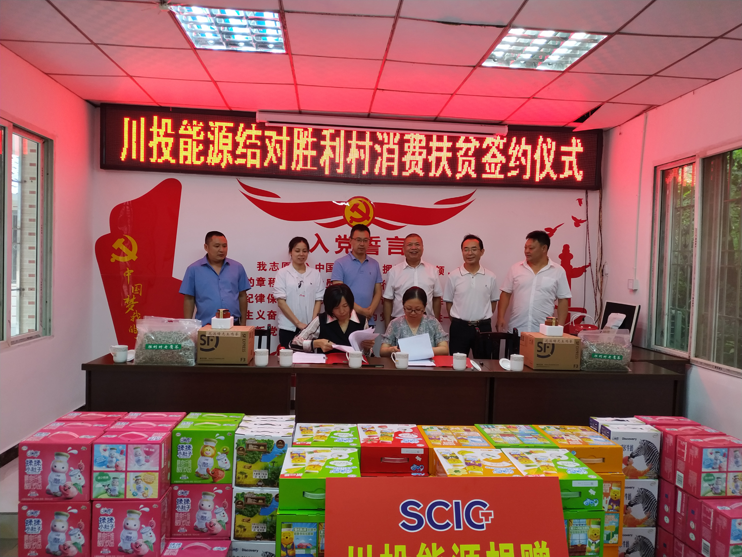 揭牌儀式結(jié)束后,楊洪一行來(lái)到勝利村村委會(huì),與金口河本地電商(曙光村農(nóng)村合作社)簽訂土特產(chǎn)采購(gòu)協(xié)議,用“以購(gòu)代捐、以買(mǎi)帶幫”方式促進(jìn)“消費(fèi)扶貧”深入開(kāi)展。下一步也將倡導(dǎo)所屬企業(yè)和全體職工擴(kuò)大“朋友圈”,引導(dǎo)更多的人參與消費(fèi)扶貧,促進(jìn)當(dāng)?shù)厝罕姺€(wěn)定脫貧。