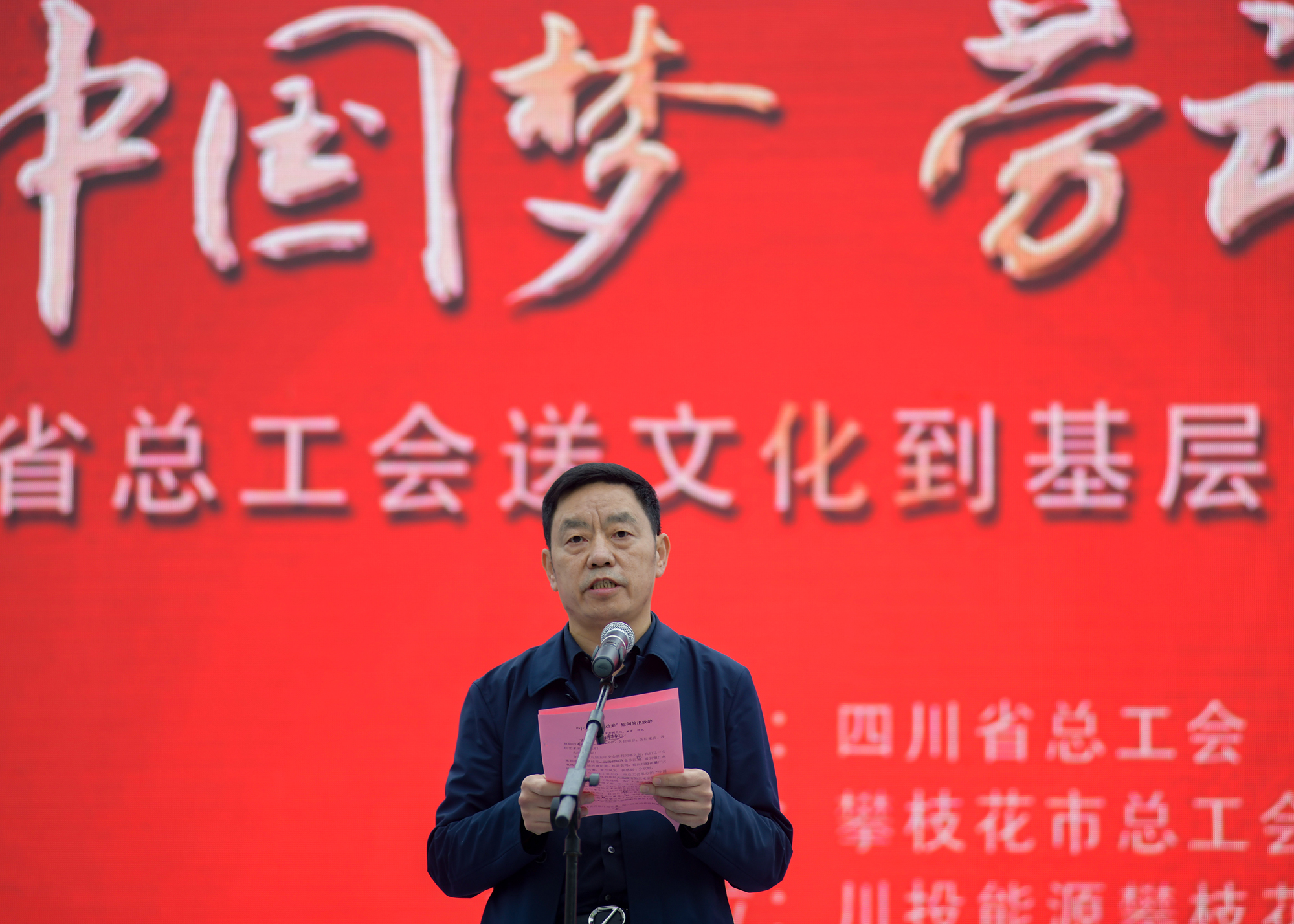 演出開始前,播放了川投能源宣傳片、攀枝花市東區(qū)宣傳片。鄧凱代表川投集團(tuán)致辭,對(duì)銀江水電站如火如荼的工程建設(shè)進(jìn)程表示欣慰。他指出,自銀江水電站建設(shè)以來,在各級(jí)政府和工會(huì)的關(guān)心支持下,銀江建設(shè)者秉承工匠精神,按照“開工不停工”的總體要求,逢山開路、遇水架橋、攻堅(jiān)克難、銳意進(jìn)取,取得了令人矚目的建設(shè)成果。川投集團(tuán)站在實(shí)現(xiàn)“兩個(gè)一百年”奮斗目標(biāo)的歷史交匯點(diǎn)上,正式展開了對(duì)標(biāo)世界一流的管理提升行動(dòng),努力打造具有國(guó)際影響力的一流國(guó)有資本投資集團(tuán),是貫徹落實(shí)黨的十九屆五中全會(huì)重要精神的最新部署,是開啟全面建設(shè)社會(huì)主義現(xiàn)代化國(guó)家新征程的時(shí)代行動(dòng),是凝心聚力勠力實(shí)現(xiàn)“銀江夢(mèng)、川投夢(mèng)、中國(guó)夢(mèng)”的沖鋒號(hào)角!最后鄧凱代表川投集團(tuán)對(duì)各位領(lǐng)導(dǎo)、各位來賓和各位藝術(shù)家的到來表示熱烈的歡迎,對(duì)一直以來關(guān)心支持川投集團(tuán)改革發(fā)展和銀江水電站建設(shè)的各級(jí)政府、工會(huì)表示衷心的感謝!