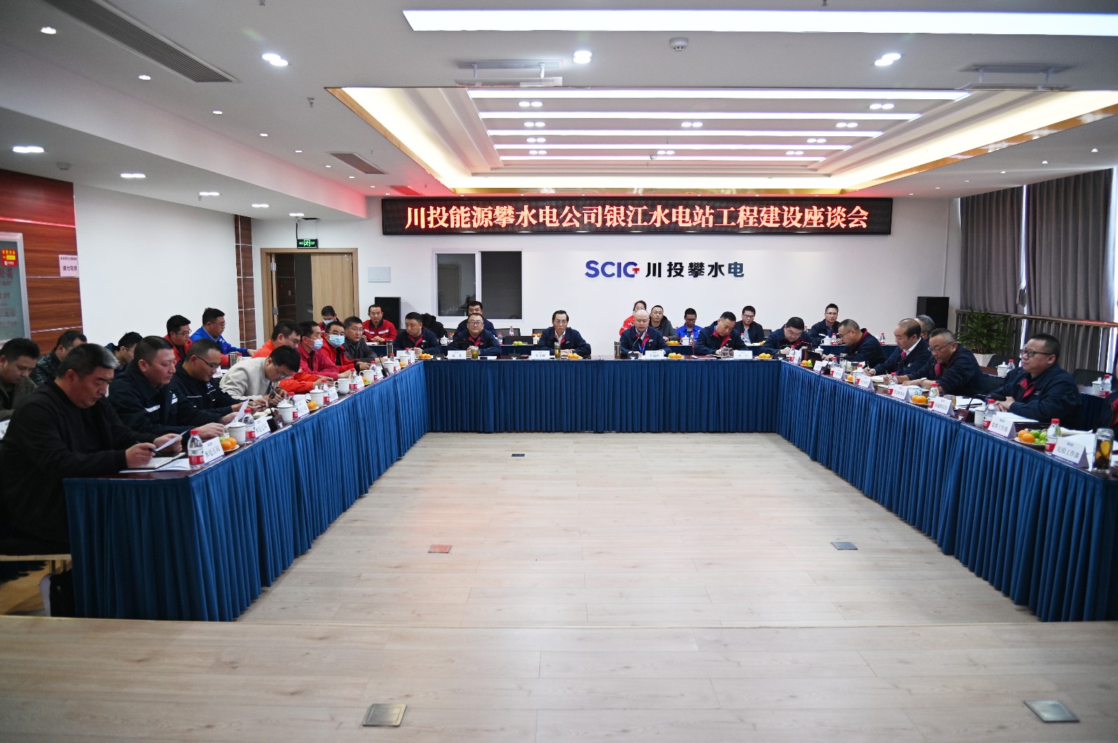 為全面總結(jié)2021年度工程建設(shè)情況,安排部署2022年度重點工作,加強與各參建單位在工程建設(shè)、服務(wù)合作等方面溝通交流,近日,公司組織召開了銀江水電站工程建設(shè)座談會,川投能源副總經(jīng)理、公司黨總支書記、董事長徐孝剛,公司領(lǐng)導(dǎo)、各部門負責人及全體員工,各參建單位項目主要負責人等共計60余人參加會議,會議由公司黨總支委員、總經(jīng)理吳巍嶼主持。