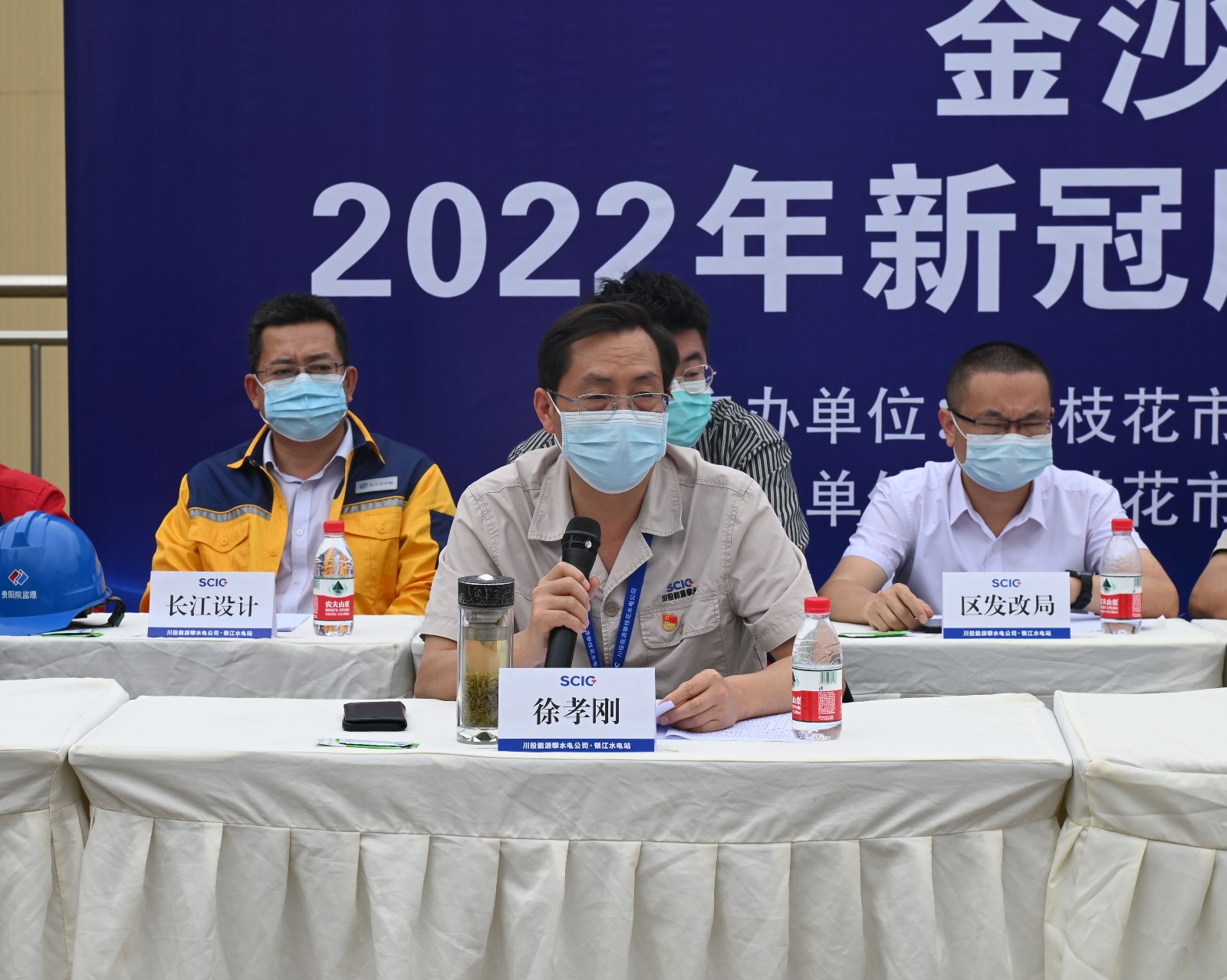 為進(jìn)一步做好公司新冠疫情防控工作,強(qiáng)化和提高公司與各參建單位的應(yīng)急處置意識(shí)和能力,5月21日上午,攀水電公司與東區(qū)疾控中心在銀江水電站35kV施工變電站聯(lián)合組織開(kāi)展新冠疫情防控應(yīng)急演練。演練由攀水電公司黨總支委員、總經(jīng)理、疫情防控領(lǐng)導(dǎo)小組副組長(zhǎng)吳巍嶼主持,川投能源副總經(jīng)理、攀水電公司黨總支書(shū)記、董事長(zhǎng)、疫情防控領(lǐng)導(dǎo)小組組長(zhǎng)徐孝剛擔(dān)任演練總指揮,攀枝花市東區(qū)政府副區(qū)長(zhǎng)王靜,東區(qū)人大黨組副書(shū)記、副主任陳康,東區(qū)有關(guān)部門負(fù)責(zé)人和公司疫情防控領(lǐng)導(dǎo)小組主要成員及各參建單位負(fù)責(zé)人到現(xiàn)場(chǎng)觀摩演練。