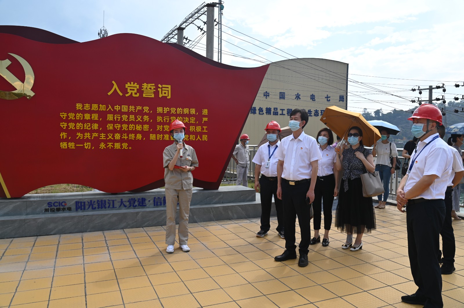 田巨龍一行首先參觀了銀江水電站施工現(xiàn)場和大黨建宣傳陣地。在施工現(xiàn)場,吳巍嶼介紹了銀江水電站的基本情況,田巨龍一行對銀江水電站成功實現(xiàn)提前一年大江截流表示充分欽佩,并表示十分期盼銀江水電站蓄水后高峽平湖、水城相融的壯觀景象。在大黨建宣傳陣地,講解員王思琪向來賓介紹了川投能源黨委“五個先鋒”黨建品牌總體要求和攀水電公司“七色陽光大黨建”的實施情況。田巨龍一行表示,公司“七色陽光大黨建”品牌特色鮮明,很好地結(jié)合攀枝花市區(qū)域特色和銀江水電站工程建設(shè)任務(wù),希望醫(yī)院黨委能進一步加強與攀水電黨總支的交流學(xué)習(xí)。