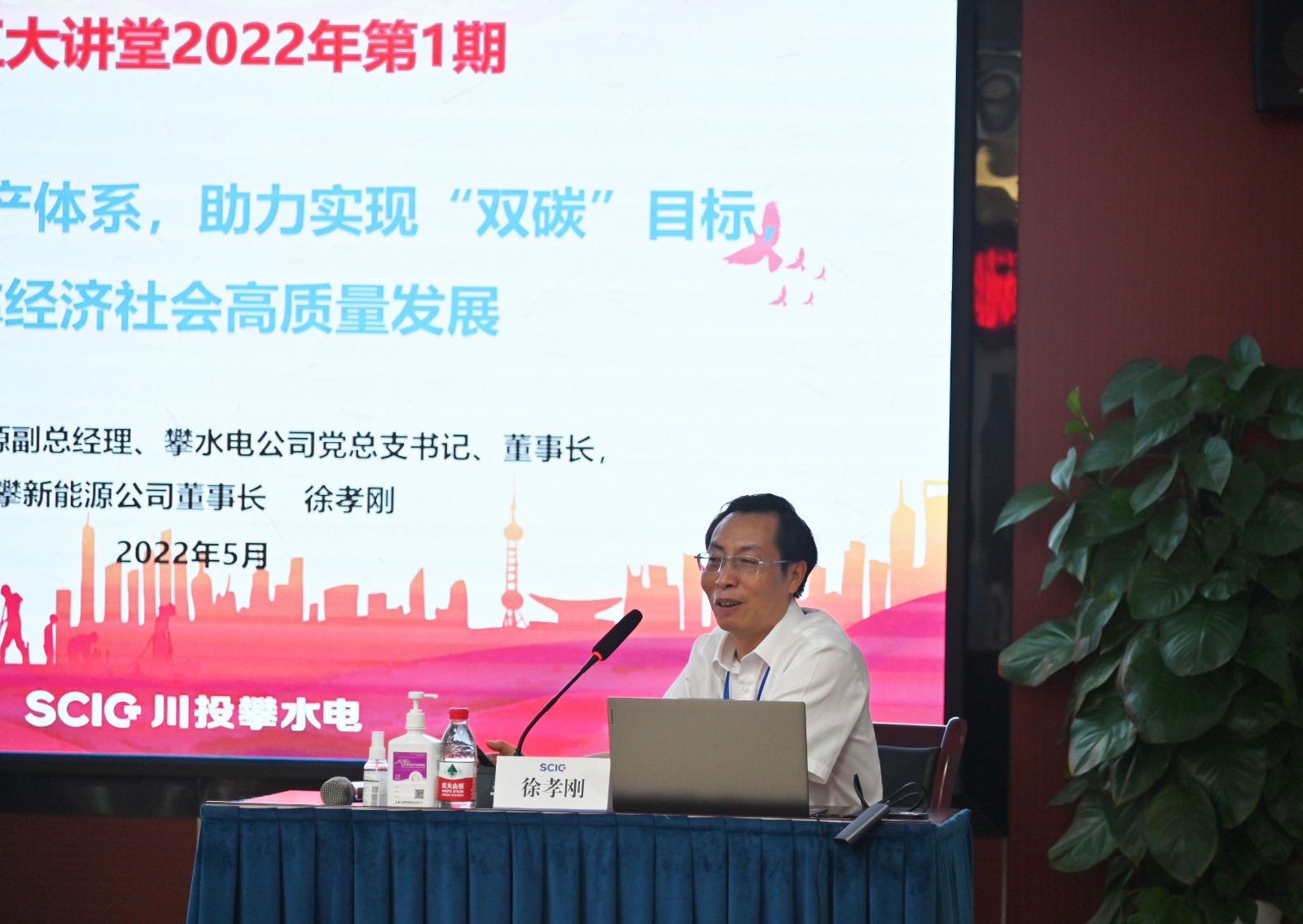 活動中,醫(yī)院急診科蘇曉勇主任、腫瘤科廖玲醫(yī)師分別以《熱愛生命,關(guān)注腫瘤》和《心肺復(fù)蘇術(shù)》為主題,為攀水電公司和參建單位員工代表帶來了的健康知識講座,并進行了身臨其境的互動教學(xué)。徐孝剛講授了《構(gòu)建清潔能源生產(chǎn)體系,助力實現(xiàn)“雙碳”目標(biāo),支撐經(jīng)濟社會高質(zhì)量發(fā)展》為題的主題黨課,從“碳達峰與碳中和的背景”、“雙碳目標(biāo)的形勢要求”、“清潔能源體系在雙碳目標(biāo)中的重要地位”、“構(gòu)建清潔能源生產(chǎn)體系的實施路徑及公司相關(guān)工作開展情況”四個方面,向大家介紹了目前國家的能源發(fā)展戰(zhàn)略、發(fā)展要求和發(fā)展形勢,并向大家介紹了攀水電公司和攀新能源公司相關(guān)工作的推進情況。徐孝剛講到,公司作為能源行業(yè)的國有企業(yè),在構(gòu)建清潔能源生產(chǎn)體系的過程中責(zé)任重大、使命光榮,并號召公司黨員群眾要不忘初心、牢記使命,為實現(xiàn)雙碳目標(biāo)積極做出更大的貢獻。