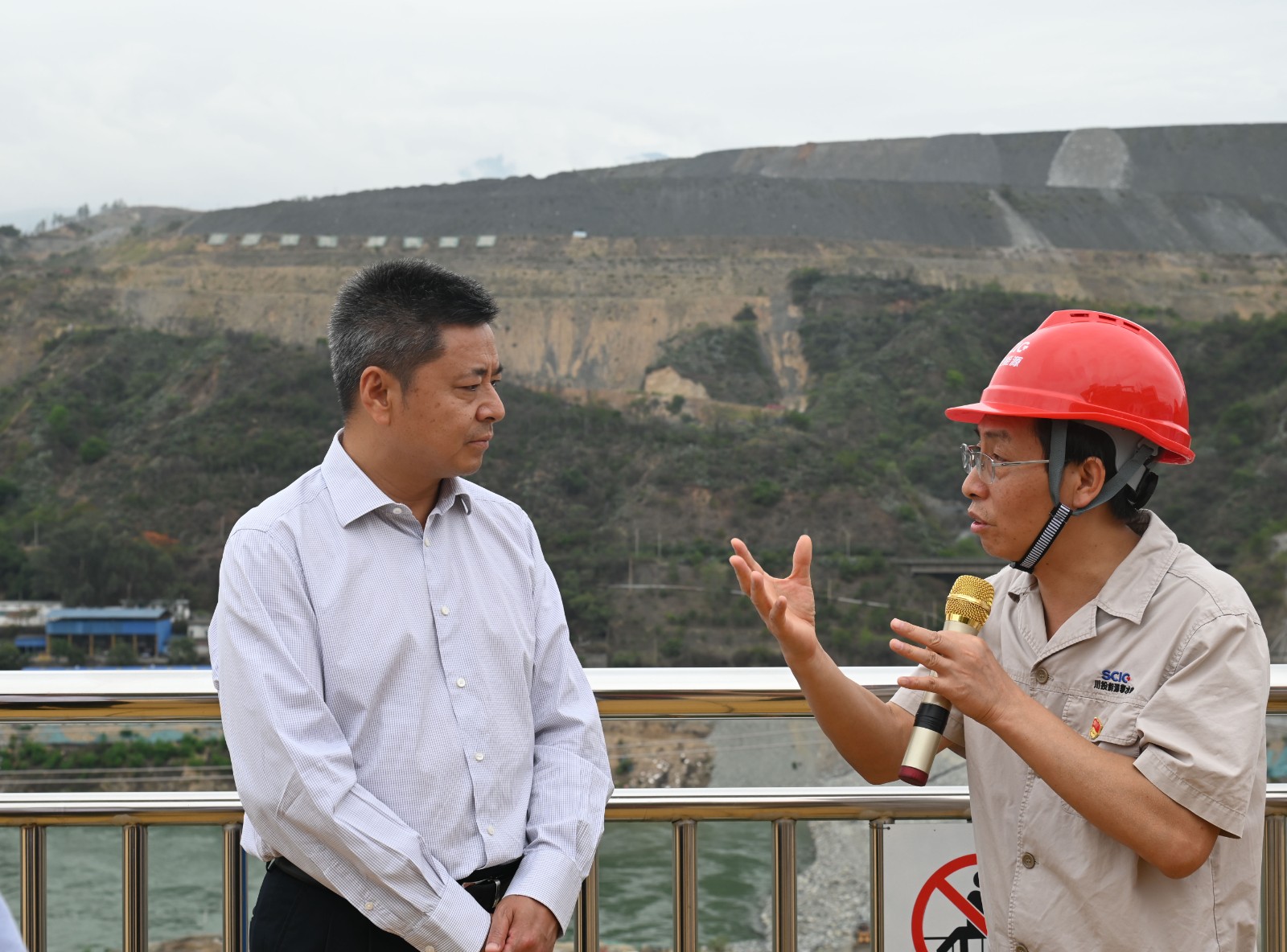 在施工變電站觀景平臺,徐孝剛詳細(xì)匯報(bào)了銀江水電站工程建設(shè)、防洪度汛、地災(zāi)隱患排查治理、防洪搶險(xiǎn)應(yīng)急演練及庫區(qū)防護(hù)工程施工等方面工作情況,重點(diǎn)介紹了二期基坑、銀江大橋及庫區(qū)防護(hù)工程等重要部位汛期注意事項(xiàng),仔細(xì)講解了各部位防洪度汛應(yīng)急處置流程。