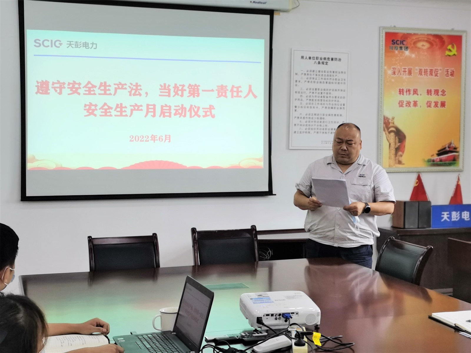 今年6月是第21個全國“安全生產(chǎn)月”,為深入貫徹習近平總書記關(guān)于安全生產(chǎn)重要論述,嚴格落實黨中央、國務(wù)院和省委省政府關(guān)于安全生產(chǎn)的決策部署,近日,以普及安全生產(chǎn)法、增強安全生產(chǎn)法治意識、落實安全生產(chǎn)責任制為目的的“安全生產(chǎn)月”活動在天彭電力隆重拉開帷幕。