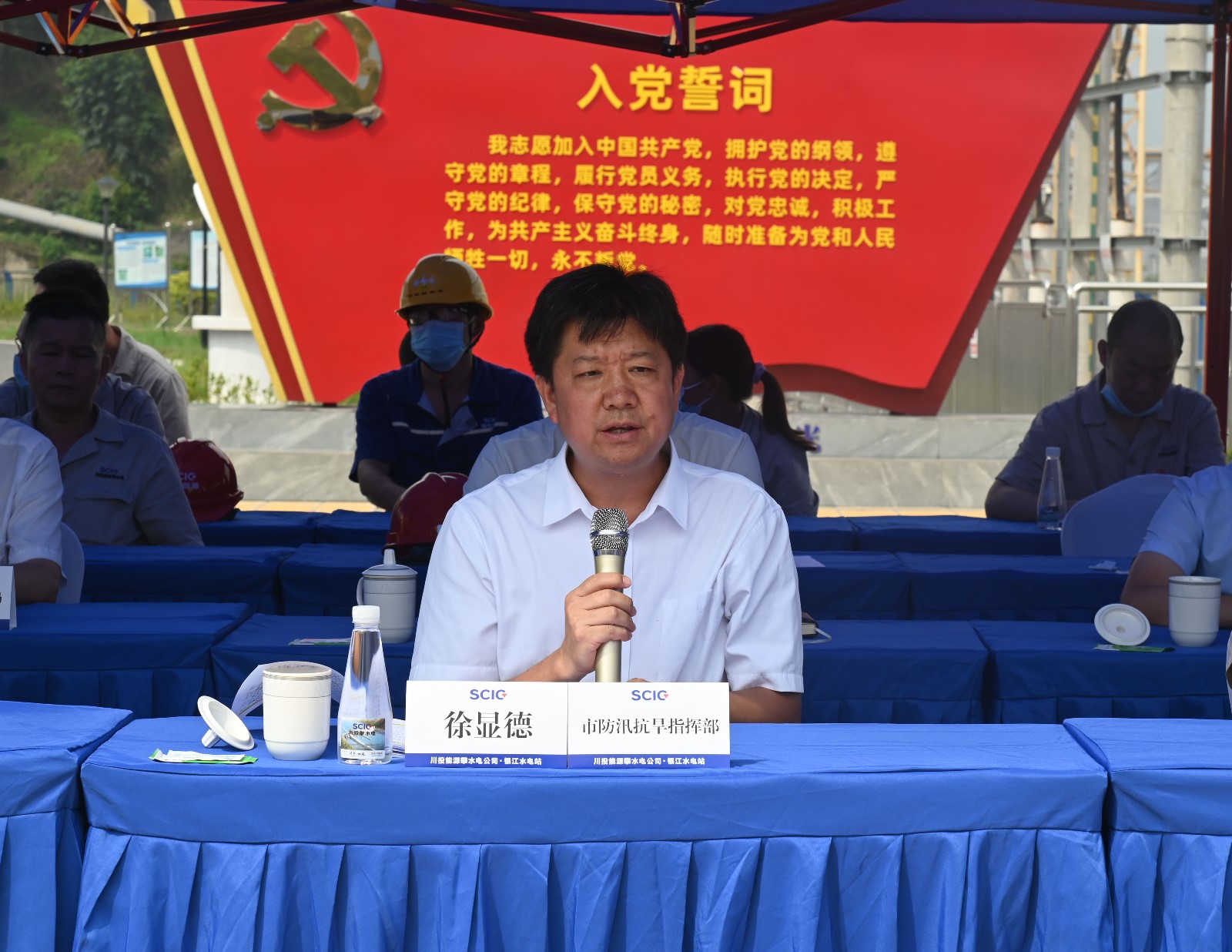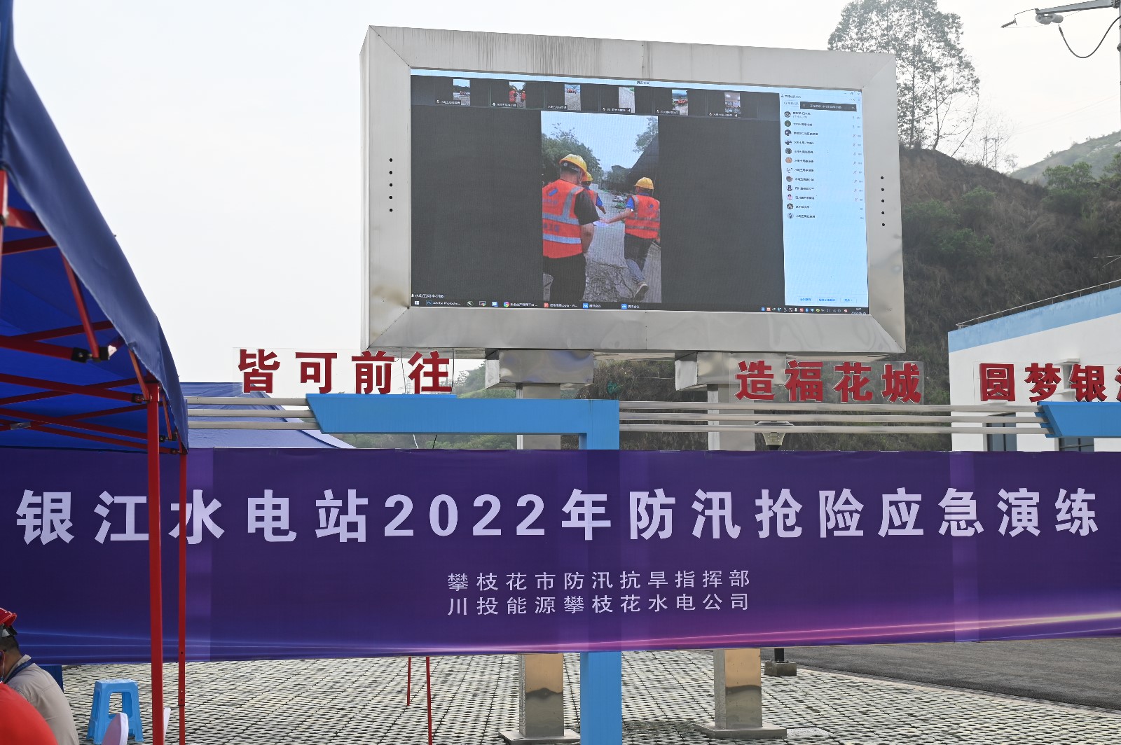 6月25日,攀水電公司組織開展銀江水電站2022年防汛搶險應急演練,演練由公司黨總支委員、董事會秘書、工會主席鄧勇主持,公司黨總支委員、總經理、防汛防地災領導小組組長吳巍嶼擔任演練總指揮。攀枝花市防汛抗旱指揮部副指揮長、市水利局總工程師徐顯德,川投能源副總經理、攀水電公司黨總支書記、董事長、攀新能源公司董事長、防汛防地災領導小組組長徐孝剛出席演練活動。