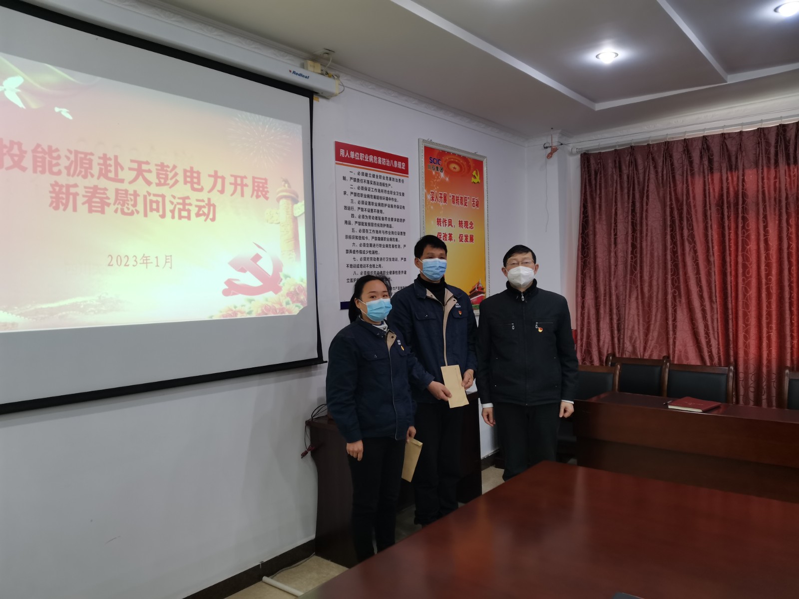 會(huì)議結(jié)束后,考核組與公司主要領(lǐng)導(dǎo)開(kāi)展談話,廣泛征求意見(jiàn),并分組對(duì)生產(chǎn)經(jīng)營(yíng)、財(cái)務(wù)、安全環(huán)保、工程建設(shè)等綜合管理情況、各類(lèi)工作臺(tái)賬及相關(guān)佐證材料進(jìn)行了現(xiàn)場(chǎng)查閱核實(shí)。為貫徹落實(shí)省國(guó)資委、集團(tuán)和公司領(lǐng)導(dǎo)關(guān)于開(kāi)展歲末年初安全環(huán)保、能源保供、信訪維穩(wěn)綜合督導(dǎo)和談心談話、走訪慰問(wèn)的工作要求,楊平還帶隊(duì)對(duì)公司生產(chǎn)一線進(jìn)行了節(jié)前安全環(huán)保檢查,要求認(rèn)真貫徹落實(shí)各項(xiàng)工作要求,徹底整治隱患,做好值班安排,加強(qiáng)應(yīng)急管理,保證春節(jié)期間安全穩(wěn)定。楊平還代表川投能源慰問(wèn)了公司困難職工。