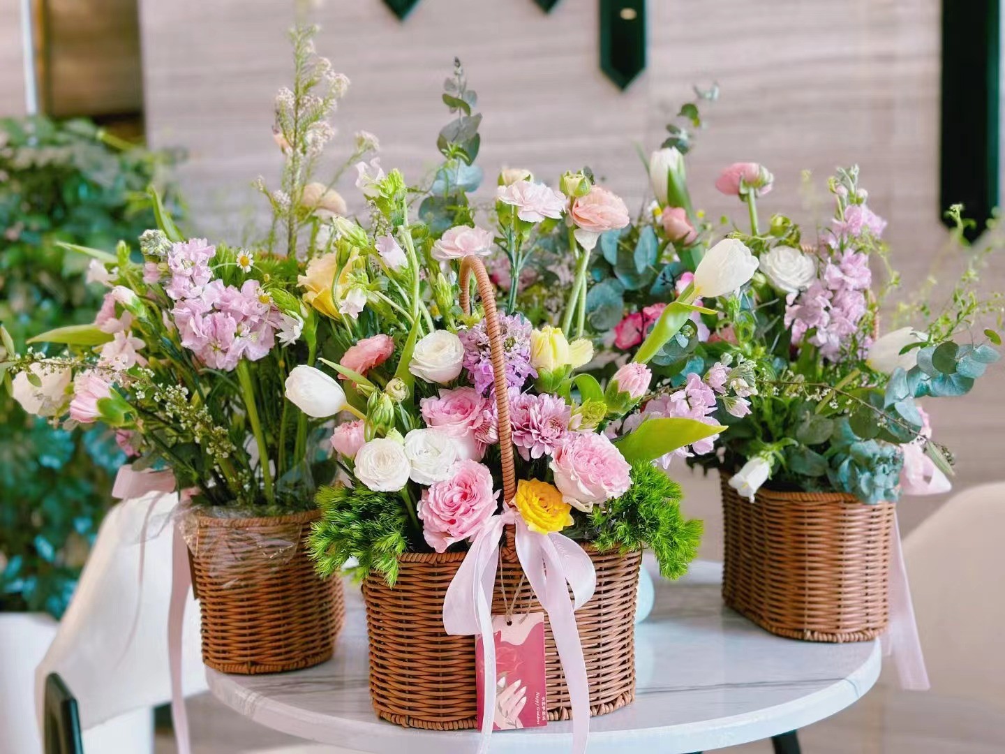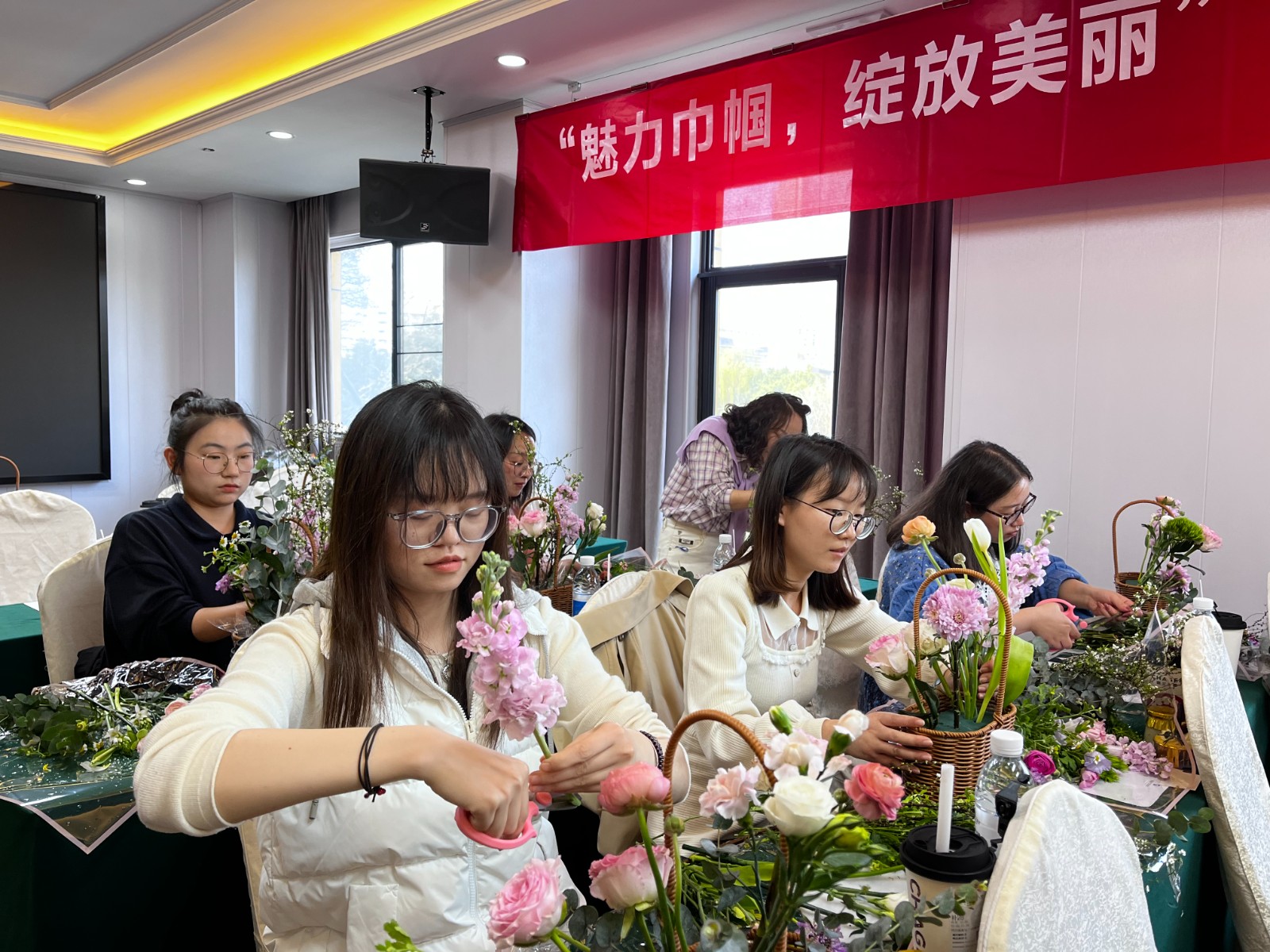 緊接著組織了DIY插花活動(dòng),邀請(qǐng)專業(yè)花藝師現(xiàn)場(chǎng)講解鮮花常識(shí)、色彩搭配、保鮮方法、花枝修剪和插花的基本技巧。在花藝師指導(dǎo)下,大家躍躍欲試,邊學(xué)邊交流,紛紛行動(dòng)起來(lái),開(kāi)啟鮮花“綻放”之旅,現(xiàn)場(chǎng)春意盎然、熱鬧非凡,一雙雙巧手將各色花卉配以枝葉點(diǎn)綴,讓一把把散落的花材變成了美麗靈動(dòng)又具有個(gè)性特色的花藝作品,大家喜笑顏開(kāi),擁抱著自己精心制作的花籃合影留念。
