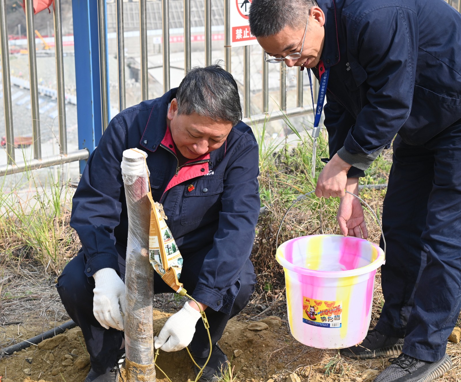3月12日上午,在第45個植樹節(jié)之際,攀水電公司為貫徹落實黨的二十大精神和習(xí)近平生態(tài)文明思想、踐行“綠水青山就是金山銀山”的理念,公司黨總支與金河村黨委在銀江水電站“七色陽光大黨建”宣傳陣地開展了黨建共建植樹活動。攀水電機關(guān)支部全體黨員、工會小組會員,各聯(lián)建支部黨員,金河村黨委黨員代表共計50余人參加?;顒佑晒军h總支副書記、董事會秘書、工會主席鄧勇主持。