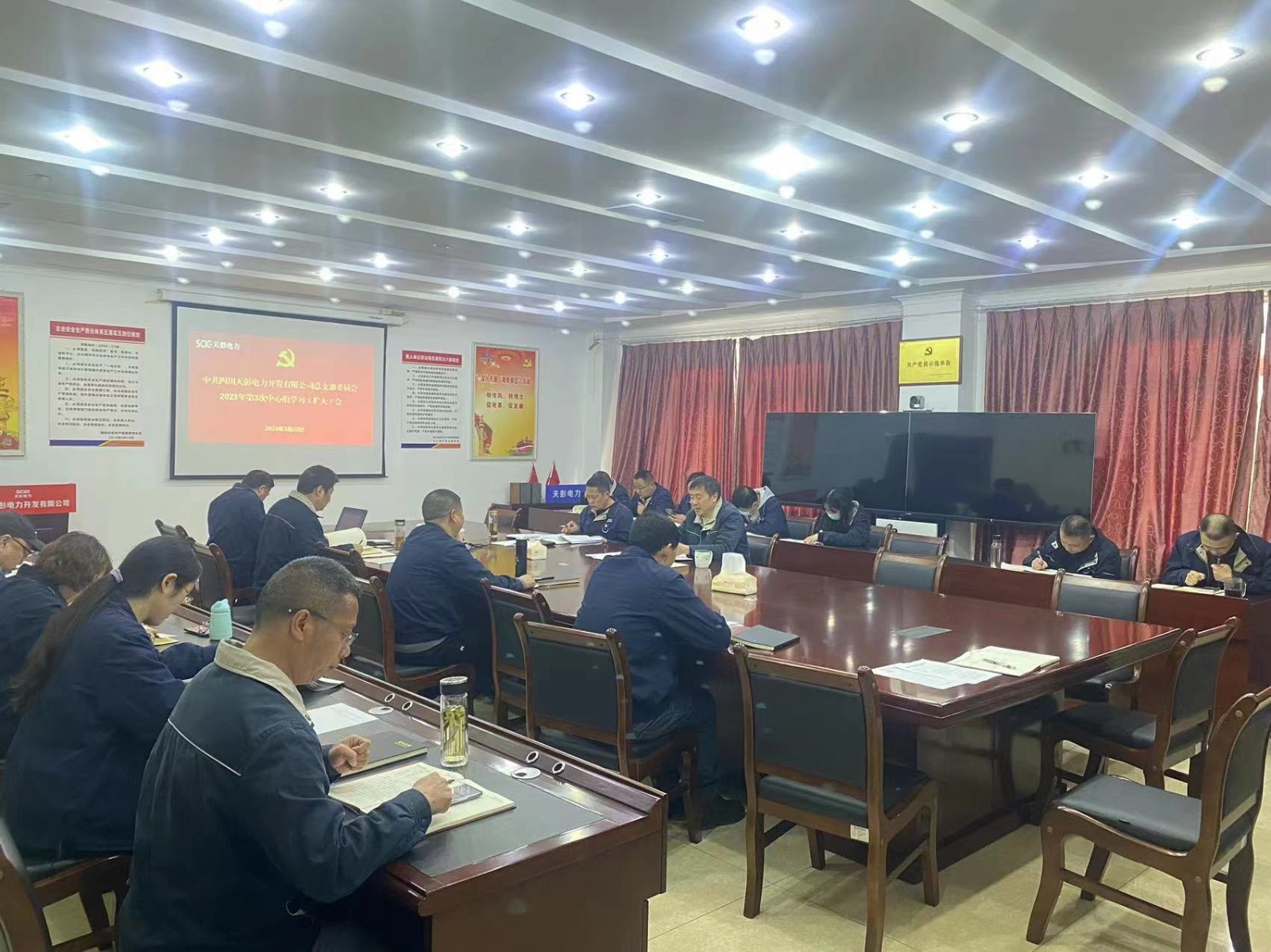 3月22日上午,川投電力黨委所屬天彭電力黨總支召開2023年第3次黨總支理論中心組學(xué)習(xí)會(huì),專題學(xué)習(xí)研討全國(guó)兩會(huì)精神。公司領(lǐng)導(dǎo)、黨員干部、關(guān)鍵崗位人員參加會(huì)議,會(huì)議由公司黨總支書記、總經(jīng)理劉紅兵主持。