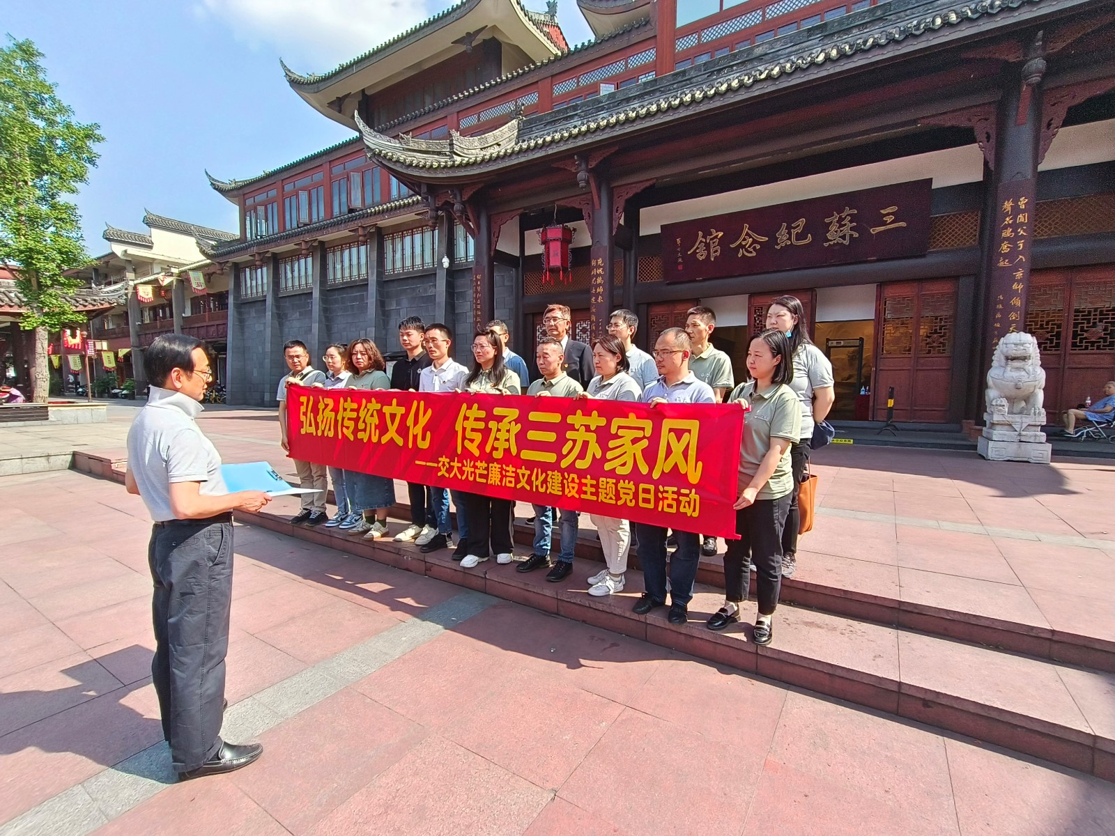 為深入學(xué)習(xí)貫徹習(xí)近平總書記關(guān)于注重家庭家教家風(fēng)建設(shè)的重要論述和黨的二十大精神,大力弘揚(yáng)和傳承優(yōu)秀傳統(tǒng)文化,4月27日,交大光芒黨總支組織經(jīng)營(yíng)班子成員、中層管理人員、關(guān)鍵崗位人員赴三蘇祠開(kāi)展廉潔文化建設(shè)主題黨日活動(dòng)。