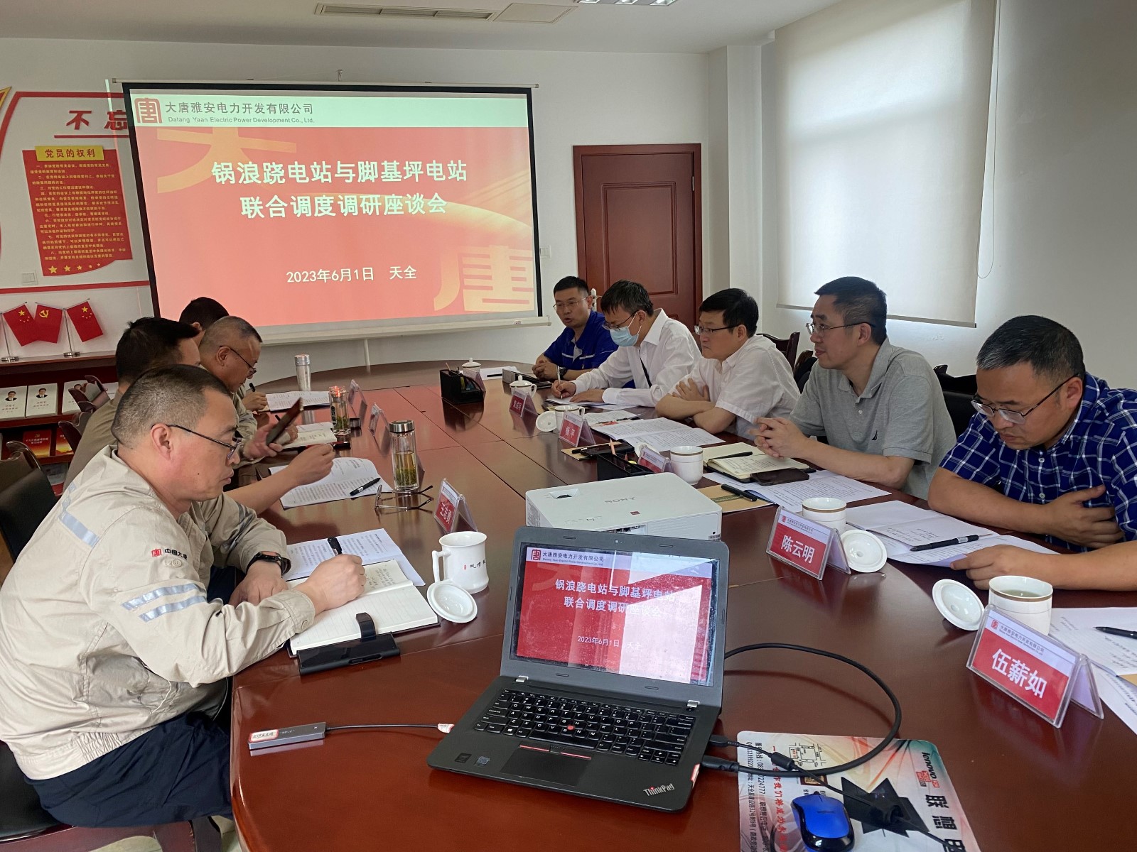 大唐雅安公司黨委副書記、總經(jīng)理宋坊鈞,黨委委員、副總經(jīng)理、紀(jì)委書記、工會(huì)主席王志勇,黨委委員、總工程師郝才偉,各相關(guān)部門負(fù)責(zé)人及鍋浪蹺電廠相關(guān)人員,川投能源經(jīng)營(yíng)部經(jīng)理陳元峰、安全環(huán)保部經(jīng)理袁成明、川投電力副總經(jīng)理陳云明及相關(guān)人員參加調(diào)研座談。