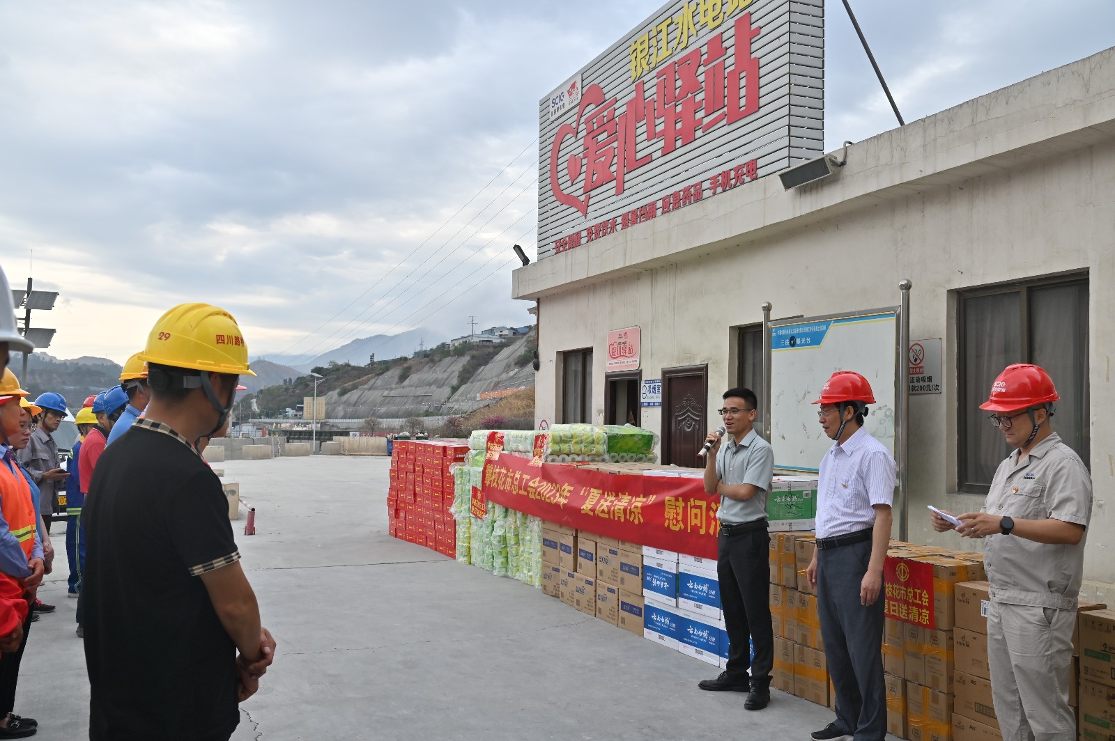 6月6日上午,攀枝花市總工會張平副主席一行來到銀江水電站“愛心驛站”,慰問奮戰(zhàn)在極端高溫下的一線作業(yè)人員和管理人員。攀水電公司黨總支書記、董事長徐孝剛,參建單位代表及公司志愿者服務(wù)隊參加慰問,公司黨總支副書記、董事會秘書、工會主席鄧勇主持活動。