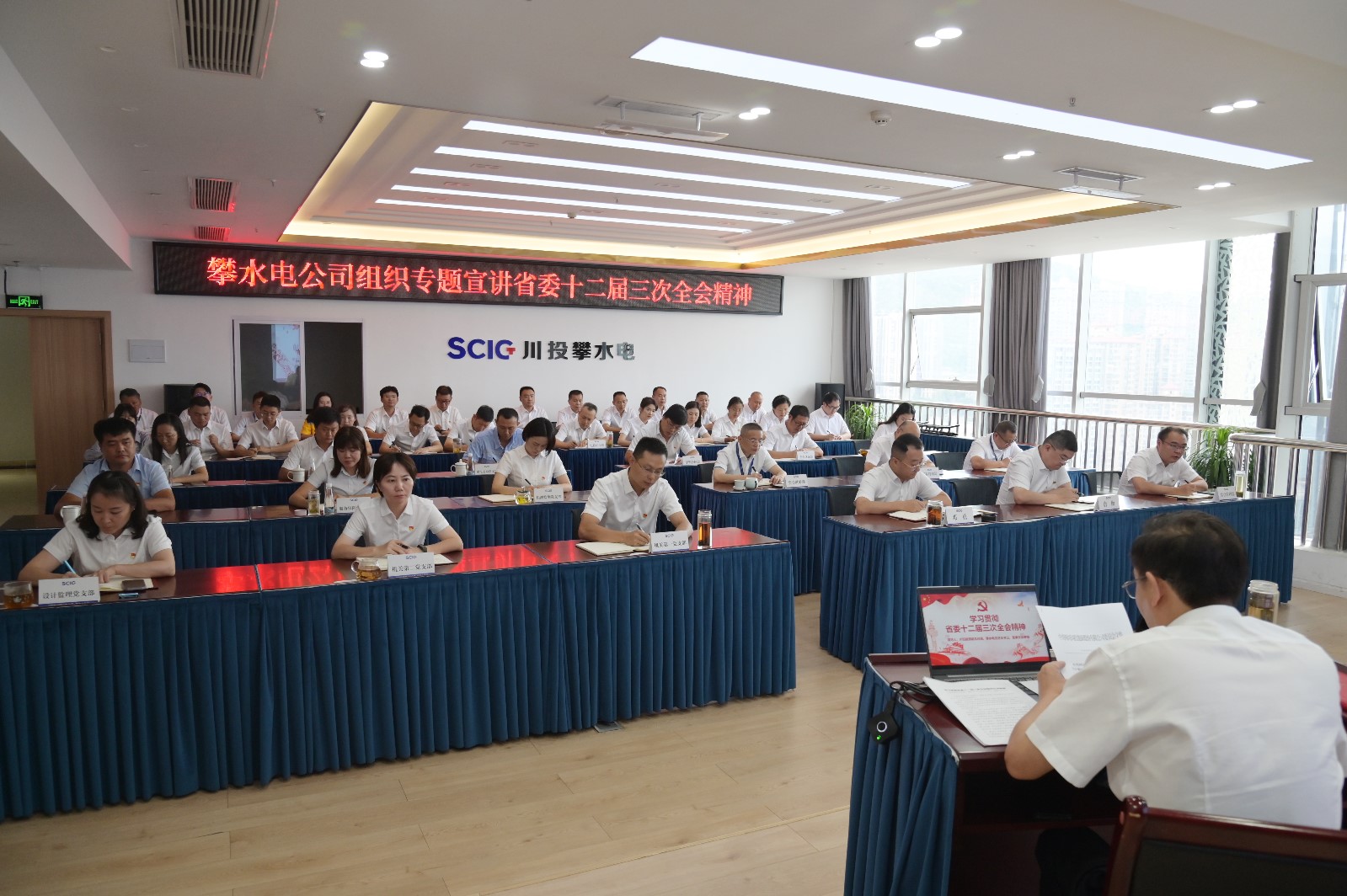 為進(jìn)一步引導(dǎo)廣大職工深入學(xué)習(xí)貫徹省委十二屆三次全會(huì)重大決策部署,激發(fā)大家干事創(chuàng)業(yè)、堅(jiān)定推動(dòng)高質(zhì)量發(fā)展的精氣神,8月19日下午,川投能源副總經(jīng)理、攀水電公司黨總支書記、董事長徐孝剛進(jìn)行省委十二屆三次全會(huì)精神專題宣講。公司全體黨員、職工,各參建單位黨員職工代表共計(jì)45人參加此次宣講會(huì)。