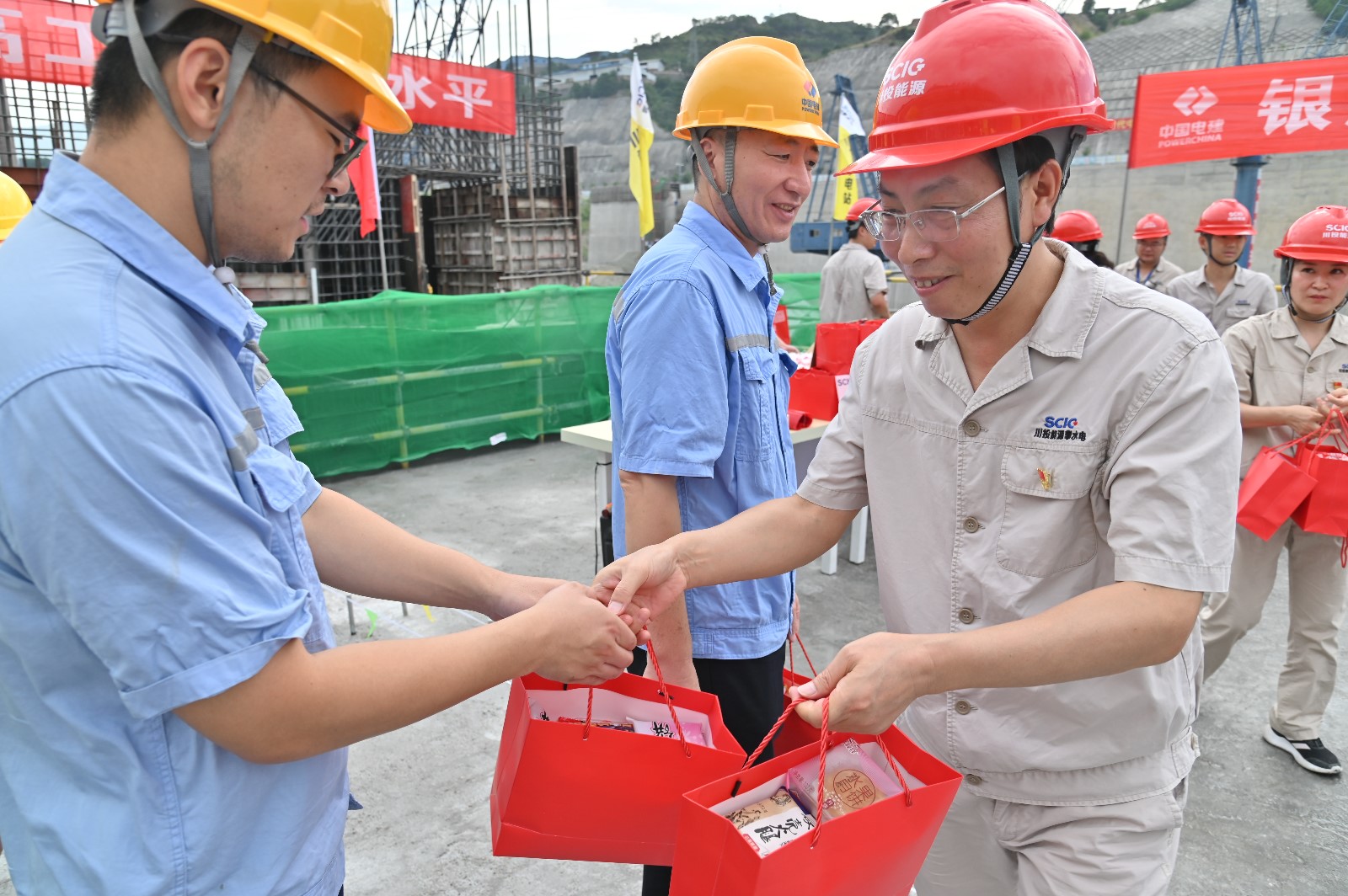 儀式最后,徐孝剛一行代表攀水電公司向中秋佳節(jié)仍堅(jiān)守在施工一線的全體人員送上了中秋、國(guó)慶節(jié)日慰問。