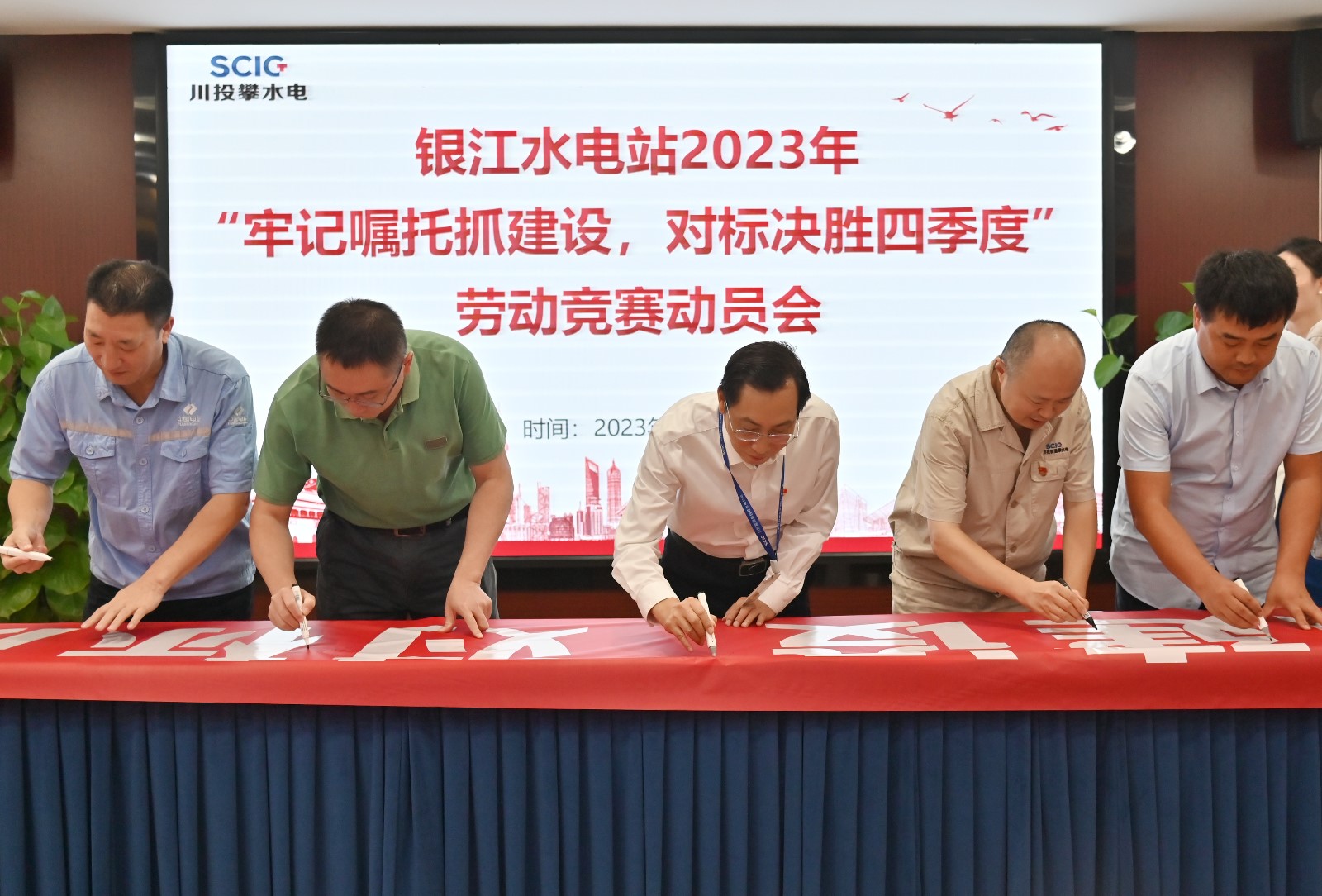 活動最后,大家在印有“牢記囑托抓建設(shè),對標(biāo)決勝四季度”的勞動競賽宣傳橫幅上簽名承諾,大家紛紛表示,一定按照勞動競賽方案要求,落實落細(xì)各項工作舉措,千方百計加快銀江水電站工程建設(shè)。