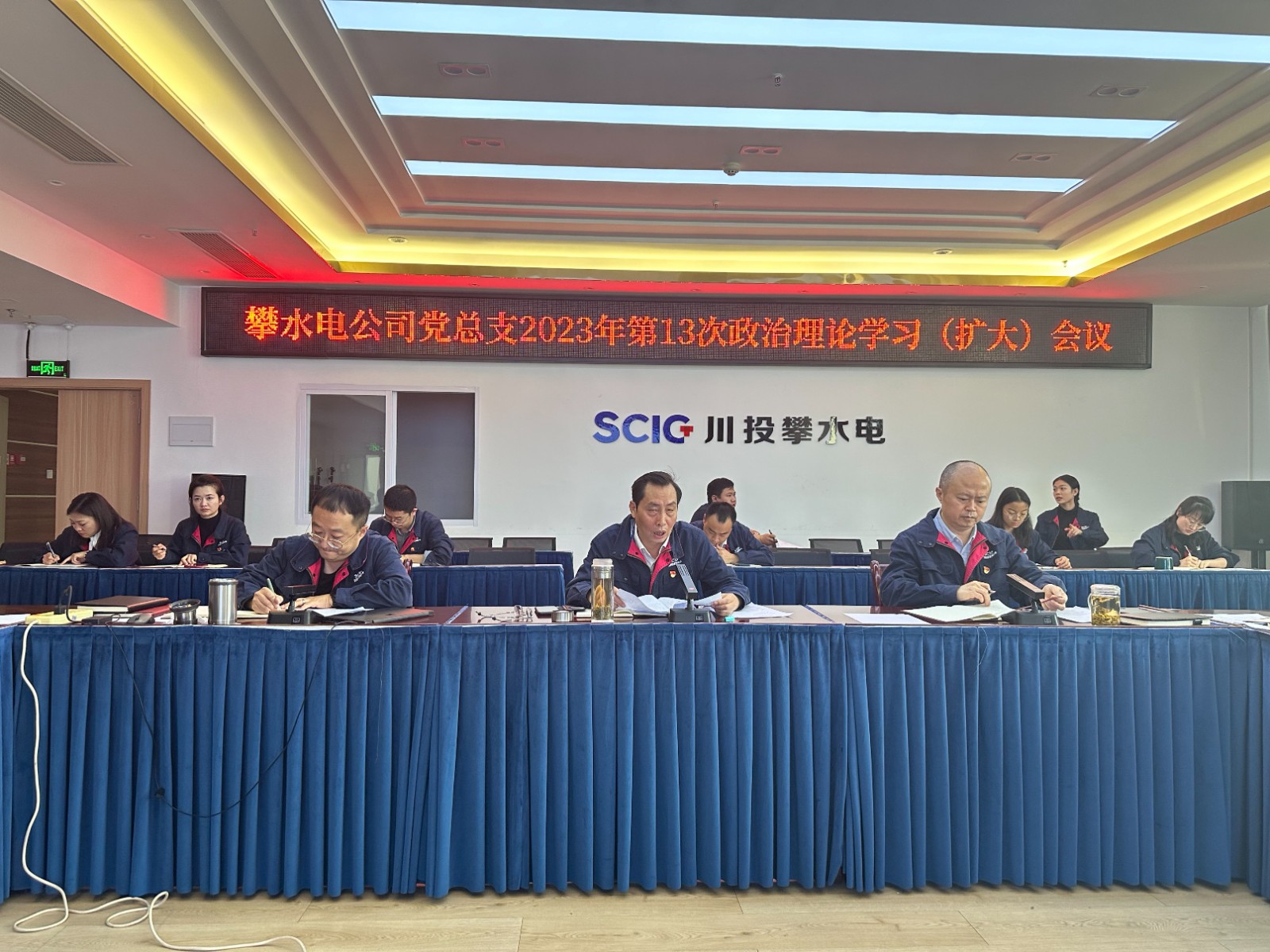 11月28日,公司黨總支在2620會(huì)議室召開了2023年第13次政治理論學(xué)習(xí)(擴(kuò)大)會(huì)議,會(huì)議由川投能源副總經(jīng)理,攀水電公司黨總支書記、董事長徐孝剛主持,黨總支政治理論學(xué)習(xí)會(huì)成員、全體中干、支部書記、其他黨員、入黨積極分子共30余人參加學(xué)習(xí)。