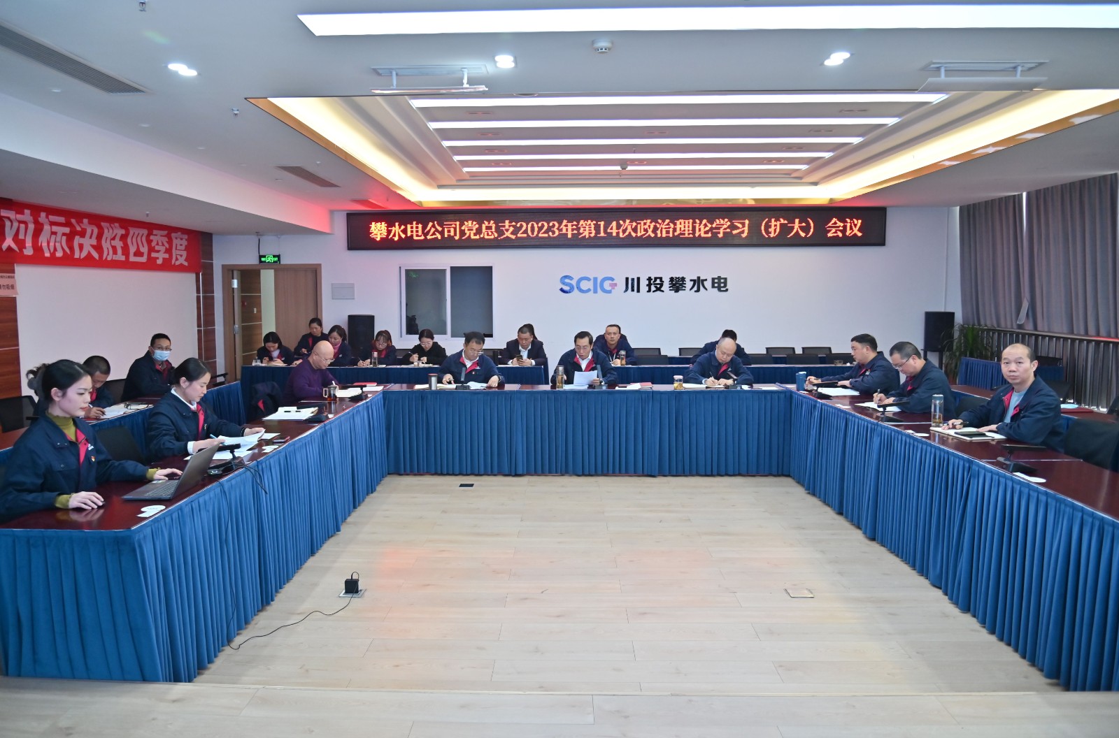 12月23日,攀水電黨總支在2620會議室召開了2023年第14次政治理論學(xué)習(xí)(擴(kuò)大)會議,會議由川投能源副總經(jīng)理、攀水電公司黨總支書記、董事長徐孝剛主持,黨總支政治理論學(xué)習(xí)會成員、各部門負(fù)責(zé)人、其他黨員、統(tǒng)戰(zhàn)對象、入黨積極分子共30余人參加學(xué)習(xí)。