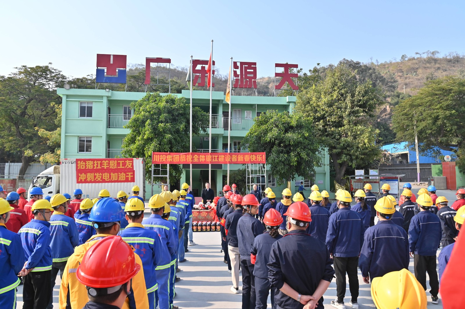 隨后,按照川投集團(tuán)黨委統(tǒng)一部署,對攀水電公司及銀江水電站參建單位一線員工800余人致以新春祝福,并為大家送上整豬整羊、食用油等慰問物資,鼓勵(lì)大家為沖刺蓄水發(fā)電目標(biāo)加油干。