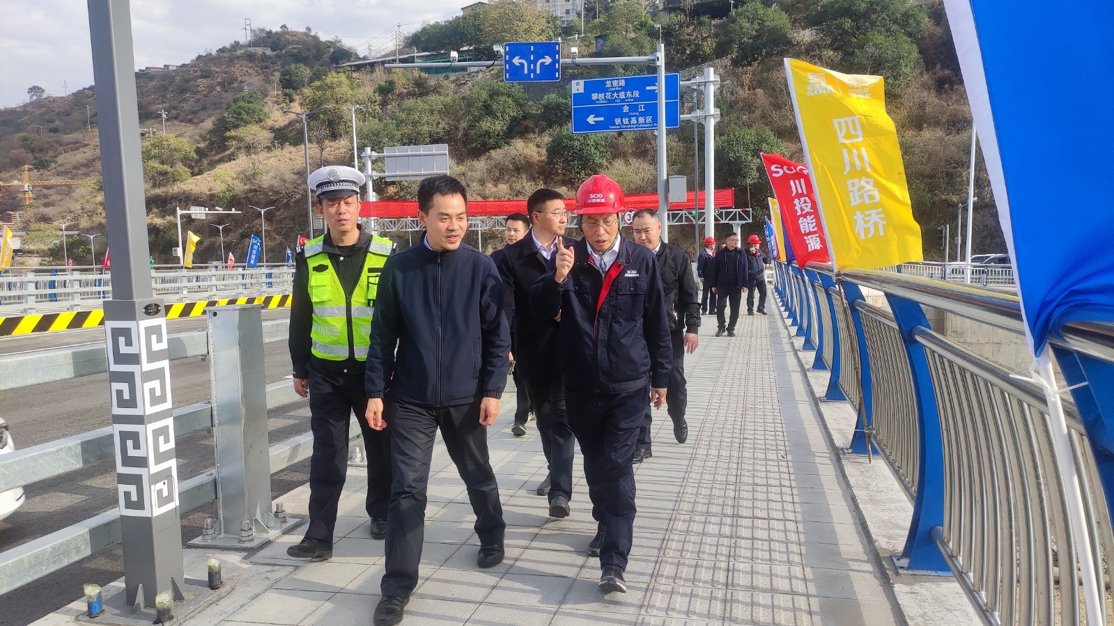 隨后17點,攀枝花市分管交通運輸副市長唐忠柱帶隊對銀江大橋通車情況進行了現(xiàn)場檢查,他對公司及參建單位的辛勤付出表示衷心的感謝,并承諾將積極推動銀江大橋墊資事項解決方案落實落地。