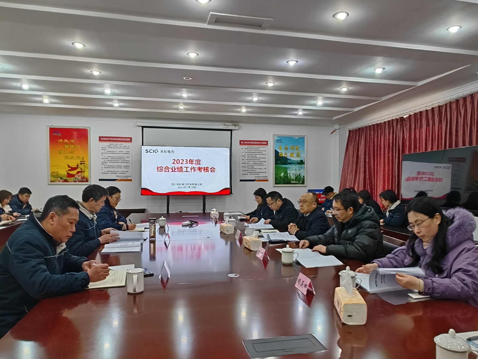 根據(jù)川投電力工作安排,2月28日,川投電力黨委副書記、總經(jīng)理、考核組組長蔡承德率隊赴天彭電力開展2023年度綜合業(yè)績工作考核。川投電力考核組成員、天彭電力領(lǐng)導(dǎo)班子成員、全體中干及員工代表參加考核會,會議由川投電力黨委委員、副總經(jīng)理王偉主持。