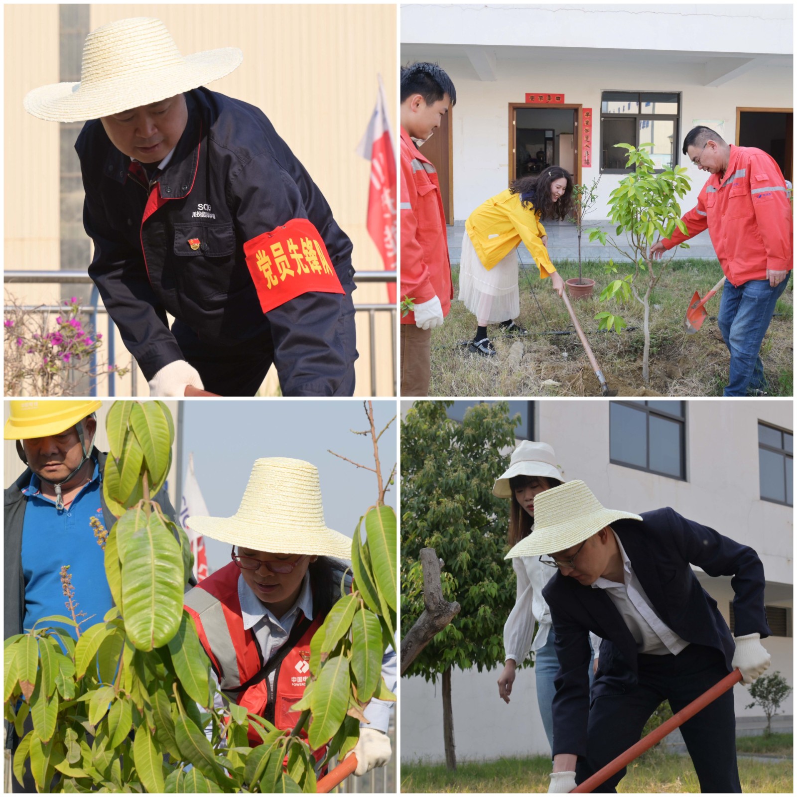 活動開始,各支部組織人員有序修整各自的責(zé)任田,去年種下的芒果樹長勢總體向好,大家首先對芒果樹進(jìn)行除草、松土、施肥、澆水;今年,公司為各支部準(zhǔn)備了新的樹苗,大家熱情高漲,分工協(xié)作,揮鍬鏟土、挖坑栽樹、填土澆水,經(jīng)過一個多小時的忙碌勞作,石榴、蜜桃、柑橘、桂花、白玉蘭等一棵棵新栽下的樹苗昂然挺立,在春風(fēng)中搖曳生姿,煥發(fā)著盎然綠意,為銀江大黨建宣傳園地增添了鮮活的“綠動力”。