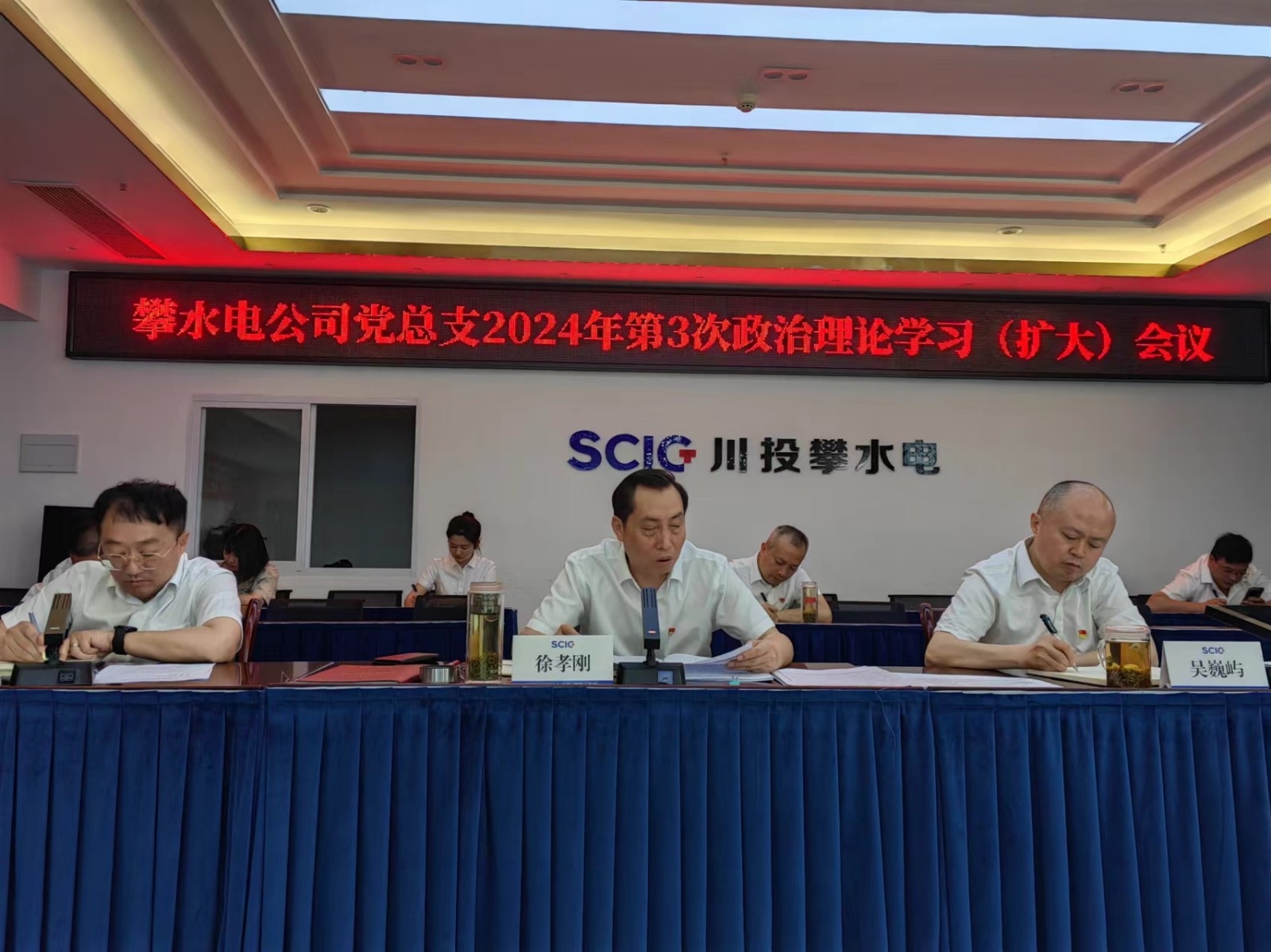 3月29日下午,攀水電公司黨總支在2620會議室組織召開了2024年第3次政治理論學(xué)習(xí)(擴大)會議。會議由川投能源副總經(jīng)理、攀水電公司黨總支書記、董事長徐孝剛主持,政治理論學(xué)習(xí)會成員、全體黨員、非黨干部、入黨分子共30余人參加學(xué)習(xí)。