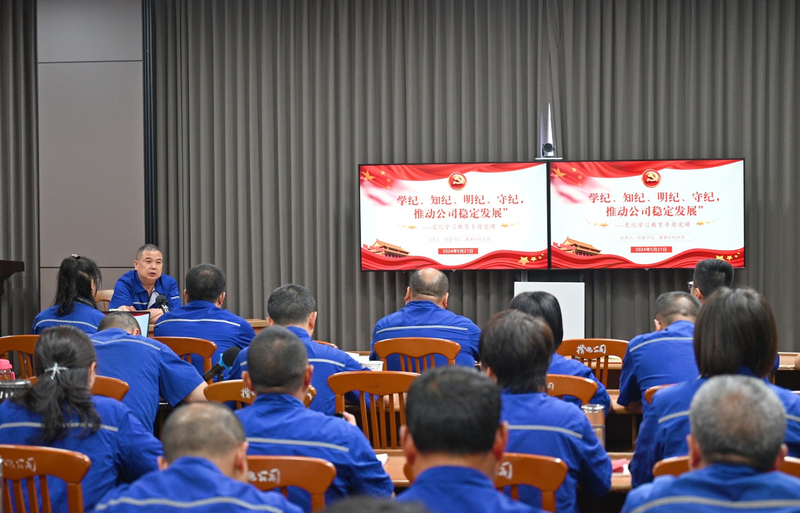 公司黨委書記、董事長何光富以《學(xué)紀(jì)、知紀(jì)、明紀(jì)、守紀(jì),推動公司持續(xù)穩(wěn)定高質(zhì)量發(fā)展》為題,從開展黨紀(jì)學(xué)習(xí)教育重在“學(xué)紀(jì)”,根在“知紀(jì)”,貴在“明紀(jì)”,成在“守紀(jì)”四個方面,為全體支部黨員講授了一堂黨紀(jì)學(xué)習(xí)教育專題黨課。何光富在授課中將黨紀(jì)學(xué)習(xí)教育落實(shí)到公司具體工作中,介紹了2024年退休職工社會化管理移交工作進(jìn)展情況。他要求,公司全體黨員干部要進(jìn)一步提高政治站位,把思想和行動統(tǒng)一到公司黨委的決策部署上來,把社會化管理移交工作作為公司黨紀(jì)學(xué)習(xí)教育的一個重要實(shí)踐,用于檢驗(yàn)黨紀(jì)學(xué)習(xí)教育的成效。他希望全體黨員干部要積極作為、勇于擔(dān)當(dāng),心往一處想、勁往一處使,維護(hù)公司和諧穩(wěn)定發(fā)展良好局面,為推動公司高質(zhì)量發(fā)展努力奮斗。