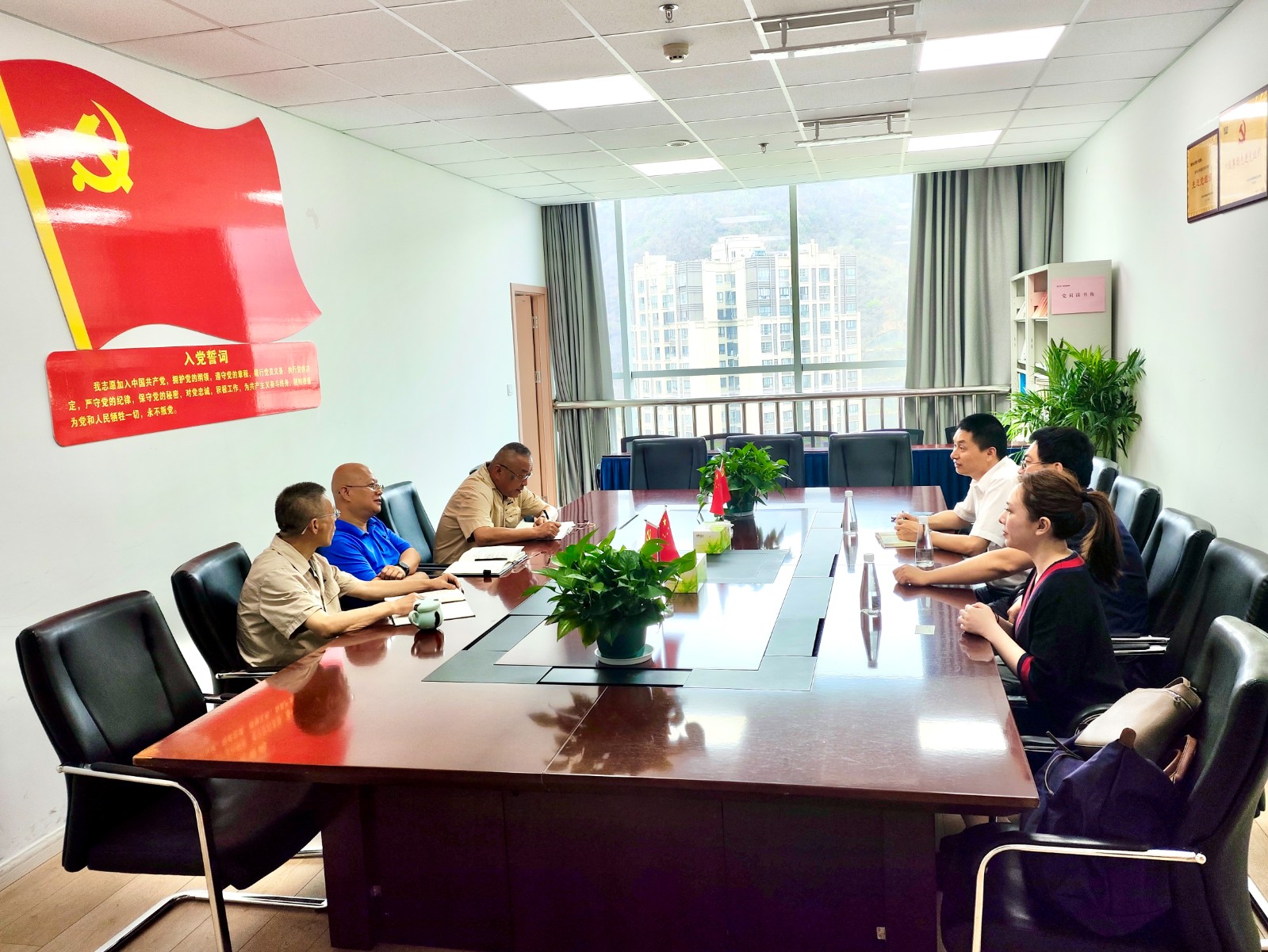 首先在攀水電公司辦公地召開(kāi)了見(jiàn)面會(huì)。會(huì)上,王俊森介紹了銀江水電站的工程建設(shè)特點(diǎn)、現(xiàn)階段施工重點(diǎn)和安全生產(chǎn)組織機(jī)構(gòu)及人員配置情況等;尤其強(qiáng)調(diào)工程質(zhì)量及安全是今年“保一爭(zhēng)二”目標(biāo)實(shí)現(xiàn)的基礎(chǔ)。公司不斷采取措施提高全員安全責(zé)任意識(shí),強(qiáng)化質(zhì)量管控,確保質(zhì)量安全可控在控,堅(jiān)決杜絕安全事故發(fā)生,為全面實(shí)現(xiàn)今年發(fā)電目標(biāo)落地筑牢防線。黃超對(duì)攀水電公司長(zhǎng)期以來(lái)對(duì)平安產(chǎn)險(xiǎn)四川分公司的支持和信任致以感謝。他表示,平安產(chǎn)險(xiǎn)四川分公司為提高投保企業(yè)抗風(fēng)險(xiǎn)能力,協(xié)助開(kāi)展風(fēng)險(xiǎn)減量和管控工作,因此在汛期到來(lái)之際,組織此次重大客戶工程項(xiàng)目的專項(xiàng)風(fēng)險(xiǎn)巡訪。