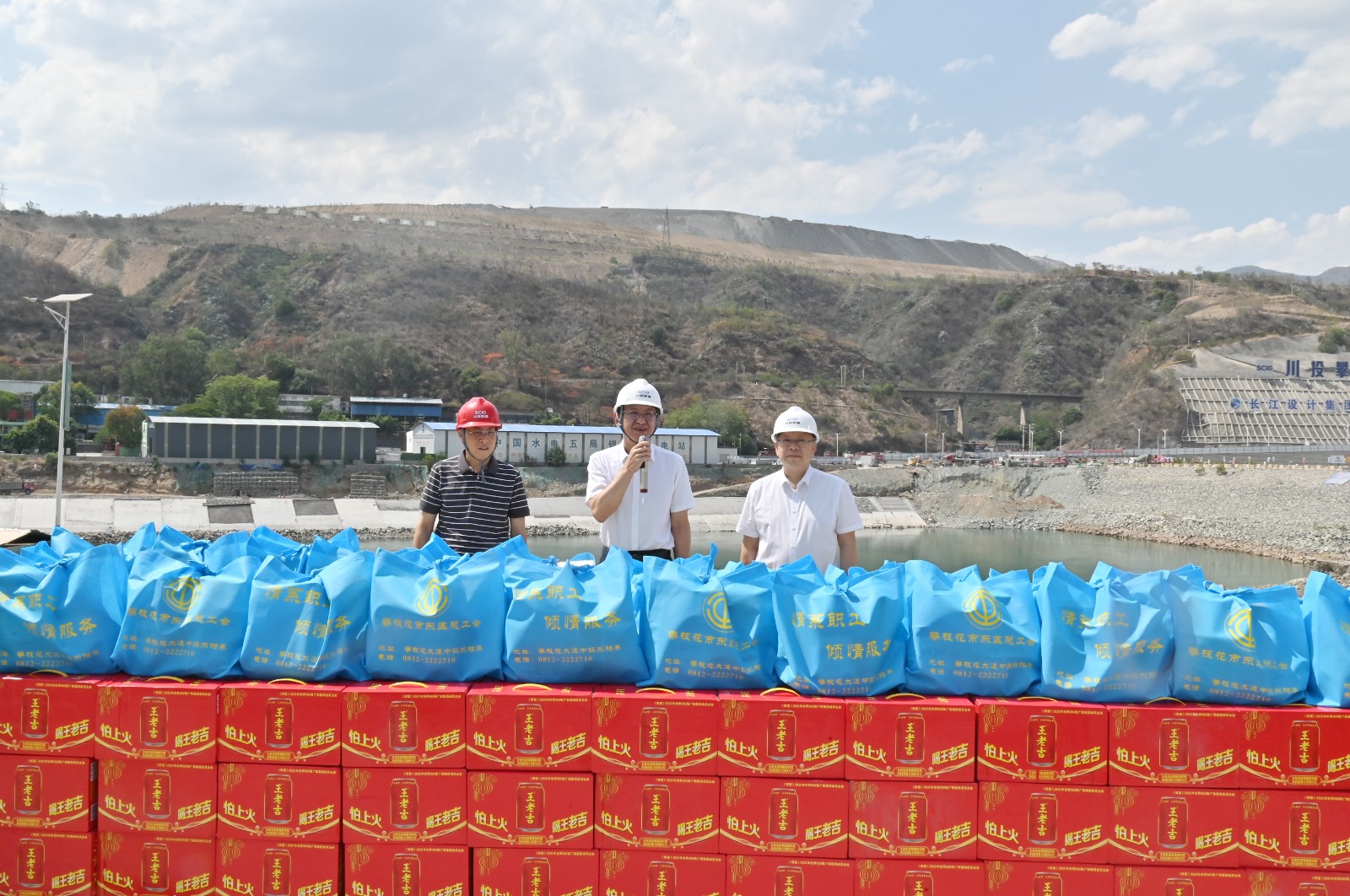 6月的攀枝花酷暑難耐,炎炎烈日給銀江水電站一線工人帶來了極大的挑戰(zhàn),為切實(shí)關(guān)心關(guān)愛一線職工,給大家加油鼓勁,送去絲絲涼意,6月4日下午,攀枝花市東區(qū)區(qū)委書記凌永航,東區(qū)區(qū)委常委、統(tǒng)戰(zhàn)部部長、區(qū)總工會(huì)主席郭江一行,赴銀江水電站工地開展夏日送清涼慰問活動(dòng),川投能源副總經(jīng)理、攀水電公司黨總支書記、董事長徐孝剛等陪同慰問。長江設(shè)計(jì)公司、貴陽院監(jiān)理部、華東院監(jiān)理部、水電五局項(xiàng)目部、水電七局項(xiàng)目部、廣東源天項(xiàng)目部等21家參建單位共計(jì)60余人接受慰問。