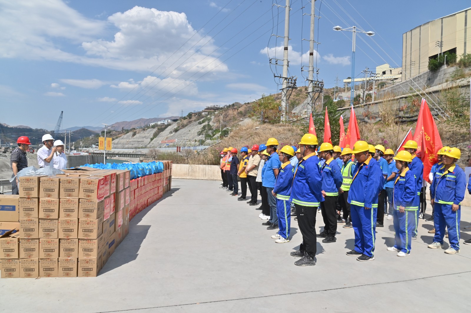 隨后,凌永航一行向銀江水電站現(xiàn)場各參建單位的一線工友們送上了清涼飲品、洗衣液、洗發(fā)露等400余份清涼物資,叮囑工友在烈日烘烤的工作中,一定要全面做好各類防護(hù)措施,注意防暑降溫,合理安排工作時(shí)間,注意自身安全和健康。