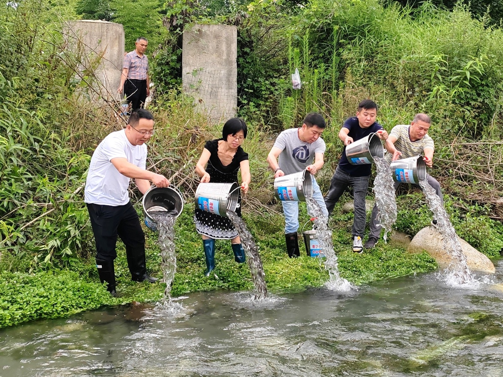上午10時(shí),位于通濟(jì)驛站附近的湔江河段魚類增殖放流投放點(diǎn)橫幅飄揚(yáng)、人潮涌動(dòng),在彭州市農(nóng)業(yè)農(nóng)村局、通濟(jì)鎮(zhèn)政府等主管部門人員的現(xiàn)場(chǎng)指導(dǎo)和周邊村鎮(zhèn)群眾代表的共同見證下,公司人員現(xiàn)場(chǎng)放流了珍貴的齊口裂腹魚苗共計(jì)20000尾,將新的生機(jī)和活力注入碧波蕩漾的河流。