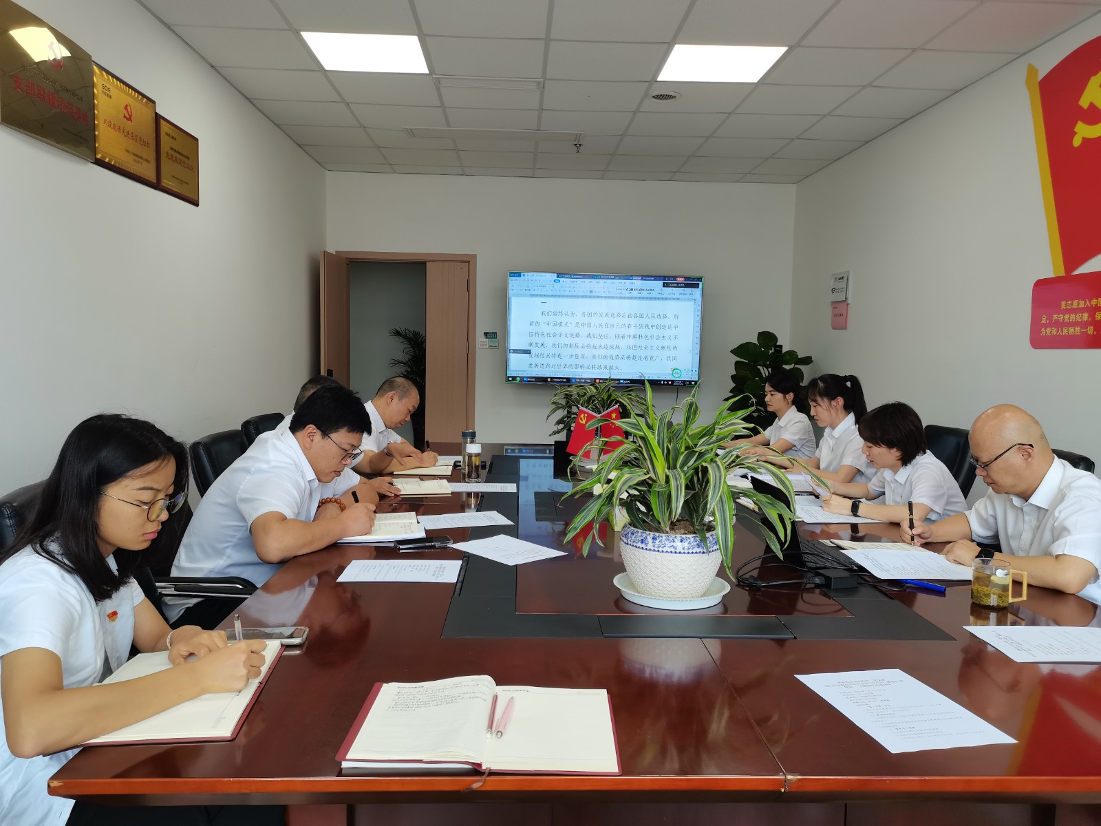 會議首先進行了第一議題學習,由支部書記周弋力領學了習近平總書記重要文章《必須堅持自信自立》;重點學習了中國共產(chǎn)黨第二十屆中央委員會第三次全體會議公報,傳達了王曉暉在全省縣域經(jīng)濟高質(zhì)量發(fā)展推進會議上的講話精神;隨后,由支部書記講授了《新修訂<中國共產(chǎn)黨紀律處分條例>解讀》紀律黨課,紀檢委員盛詩棋進行《以案為鏡鑒以廉為底線》案例剖析。參會黨員緊扣黨的六項紀律,結(jié)合自身實際情況逐一交流發(fā)言,分別從工作紀律、日常言行、家風家教等方面進行了研討。最后,支部委員會向大會通報了支部黨員發(fā)展相關情況。