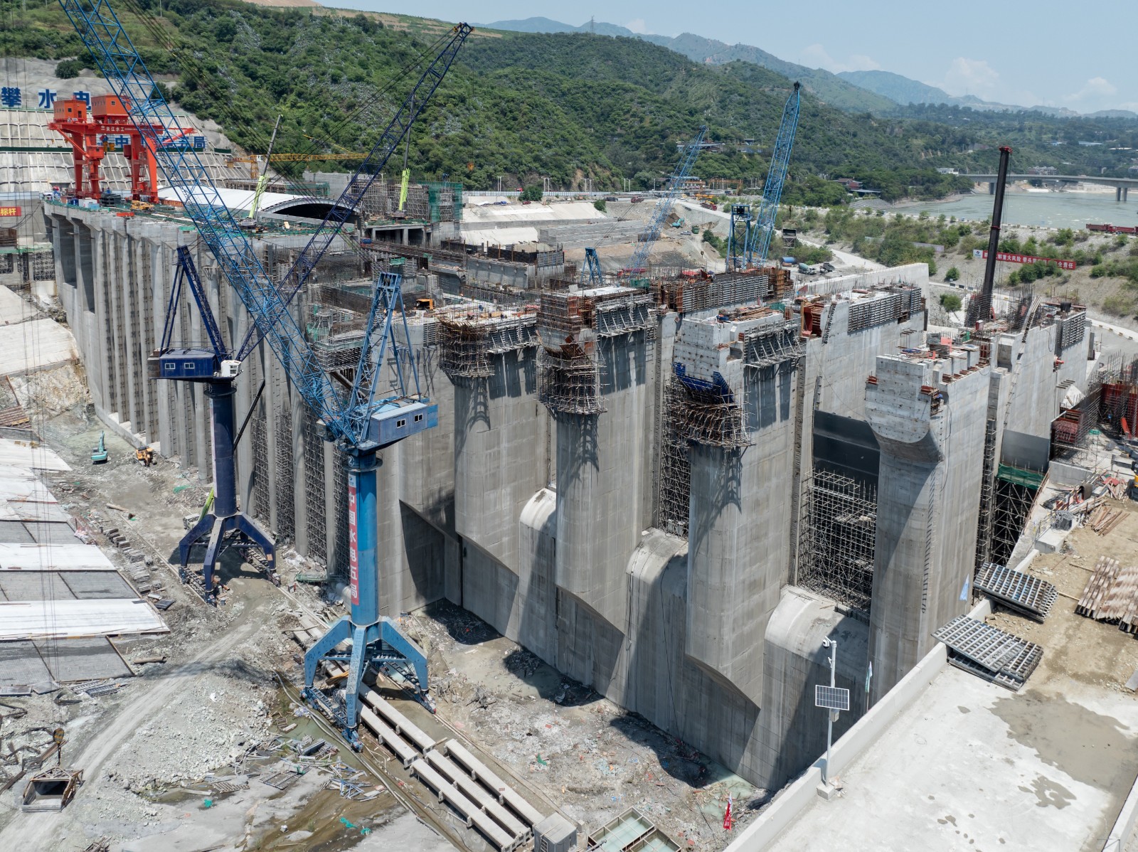 徐孝剛表示,金屬結(jié)構(gòu)安裝是實現(xiàn)工程下閘蓄水目標(biāo)的核心任務(wù),自7月下旬首節(jié)弧形工作門吊裝以來,在不到3個月的時間內(nèi),將要完成近萬噸的安裝工程量,工期緊、任務(wù)重、難度大,參建各方超前謀劃、提前部署,深入開展設(shè)計及施工優(yōu)化,多次專題研討安裝方案并組織專家論證,突破多項常規(guī)方法,采取鋼絞線提升裝置安裝尾水事故檢修門、臨時平臺配合汽車吊站位安裝弧形工作門、門槽安裝及其二期混凝土澆筑工序循環(huán)優(yōu)化等一系列超常規(guī)措施,大幅縮短了安裝工期,取得了階段性成果,希望各參建單位持續(xù)保持昂揚斗志、乘勢而上,協(xié)同并進、合力攻堅,為全面實現(xiàn)工程建設(shè)目標(biāo)不懈奮斗。