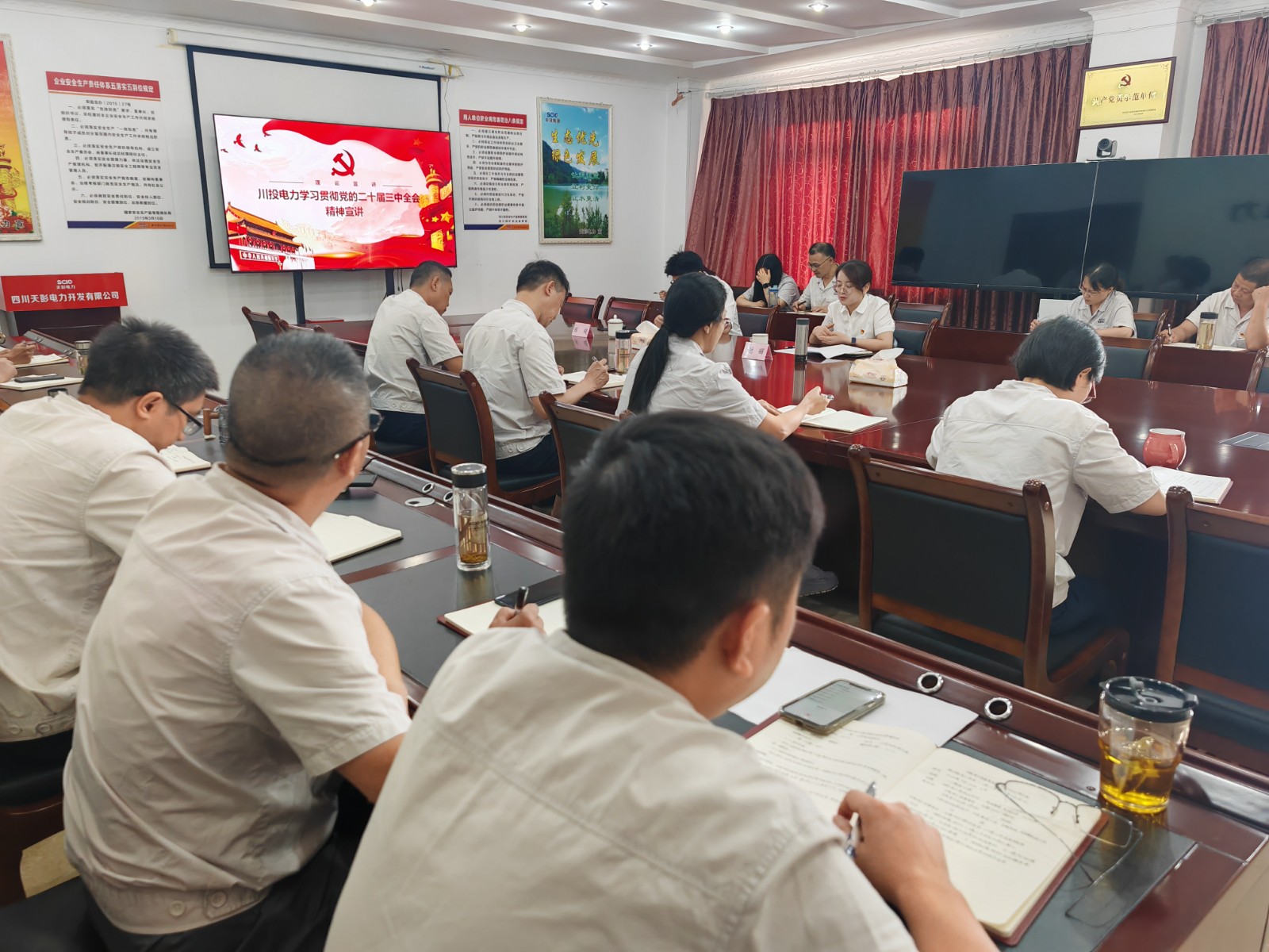 近日,川投電力黨委委員、紀(jì)委書記謝麗到天彭電力宣講黨的二十屆三中全會(huì)精神,引導(dǎo)廣大黨員干部進(jìn)一步把思想和行動(dòng)統(tǒng)一到黨中央決策部署上來(lái),激發(fā)干事創(chuàng)業(yè)活力。天彭電力領(lǐng)導(dǎo)班子成員、黨員、干部、關(guān)鍵崗位人員參加宣講會(huì)。