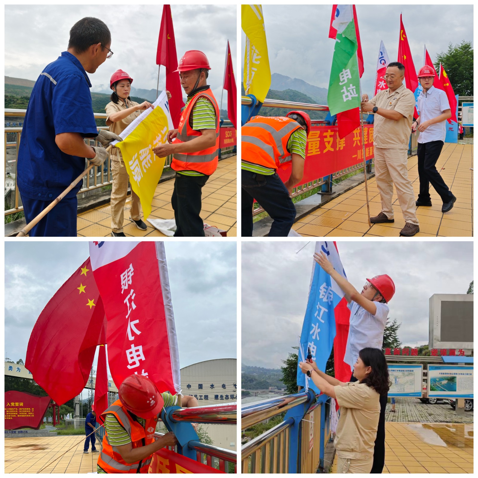 在大家的共同努力下,一面面嶄新鮮艷的五星紅旗,一幅幅絢麗的彩旗掛在黨建宣傳陣地和施工區(qū)域,紅旗彩旗與綠水青山交相輝映,隨著江風(fēng)襲來迎風(fēng)招展,構(gòu)成了金沙江畔的美麗畫卷。每名黨員都用勞動(dòng)之美迎接國慶節(jié)的到來,用務(wù)實(shí)的工作作風(fēng)確保實(shí)現(xiàn)銀江水電站年底發(fā)電目標(biāo),用實(shí)際行動(dòng)向祖國母親75歲華誕獻(xiàn)禮。