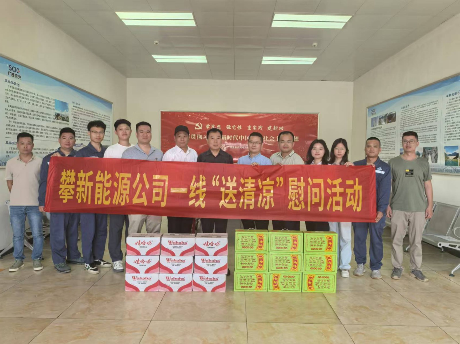 炎夏送清涼,溫情暖人心。攀新能源公司為進一步做好防暑降溫工作,深切關懷在項目現(xiàn)場作業(yè)的一線職工職業(yè)健康,確?,F(xiàn)場安全生產(chǎn),組織開展了“送清涼”一線慰問活動。攀新能源公司黨支部委員、總經(jīng)理周軍帶隊“送清涼”慰問小組,依次前往廣西農(nóng)光公司、桂平光伏電站、廣西融安公司光伏發(fā)電站項目現(xiàn)場,為辛勤工作的勞動者們送去清涼與關懷。