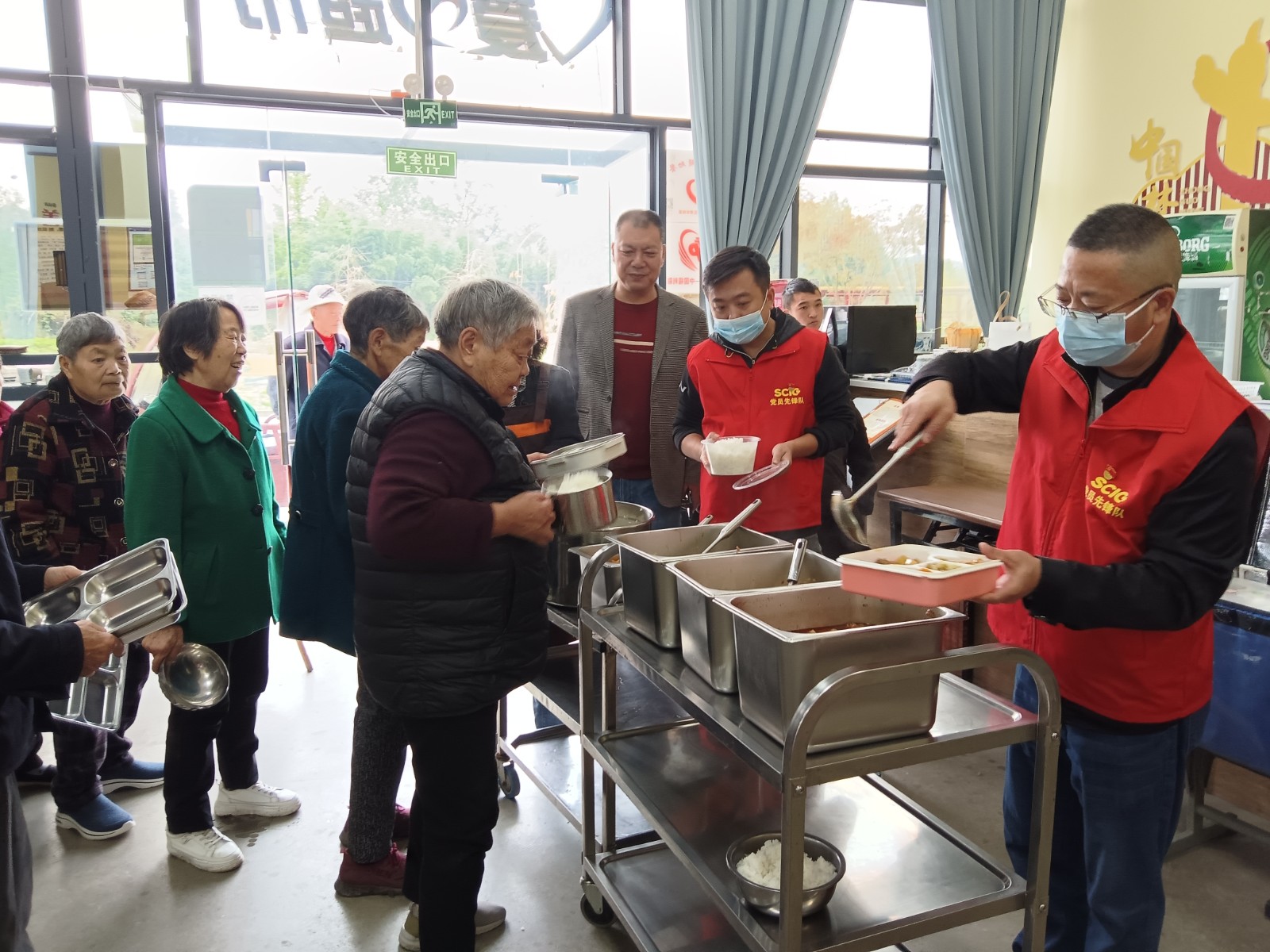 井然有序的活動(dòng)現(xiàn)場(chǎng),身著醒目紅色馬甲的黨員們迅速分工、密切合作,有的拿起掃帚、拖把和抹布開(kāi)展衛(wèi)生清潔,從地面到墻面、從桌椅到餐具的每一個(gè)角落,為老人們營(yíng)造整潔舒適的就餐環(huán)境;有的為行動(dòng)不便的老年人及時(shí)送餐上門(mén),讓他們能心情愉悅地享用美食;有的則陪伴在老人身邊與他們親切交談,關(guān)愛(ài)他們的健康與需求,傾聽(tīng)他們的心聲與故事?!鞍謰屖程谩眱?nèi)忙碌穿梭的黨員身影,構(gòu)成了一幅幅溫馨動(dòng)人的畫(huà)面。