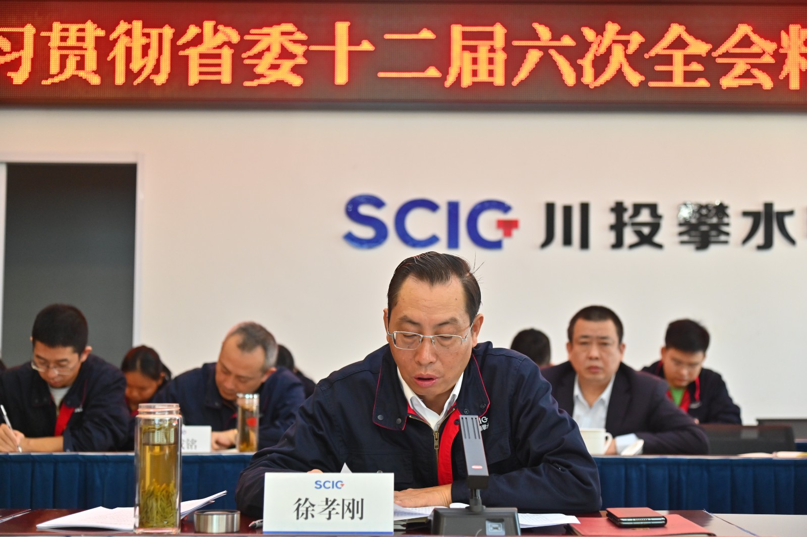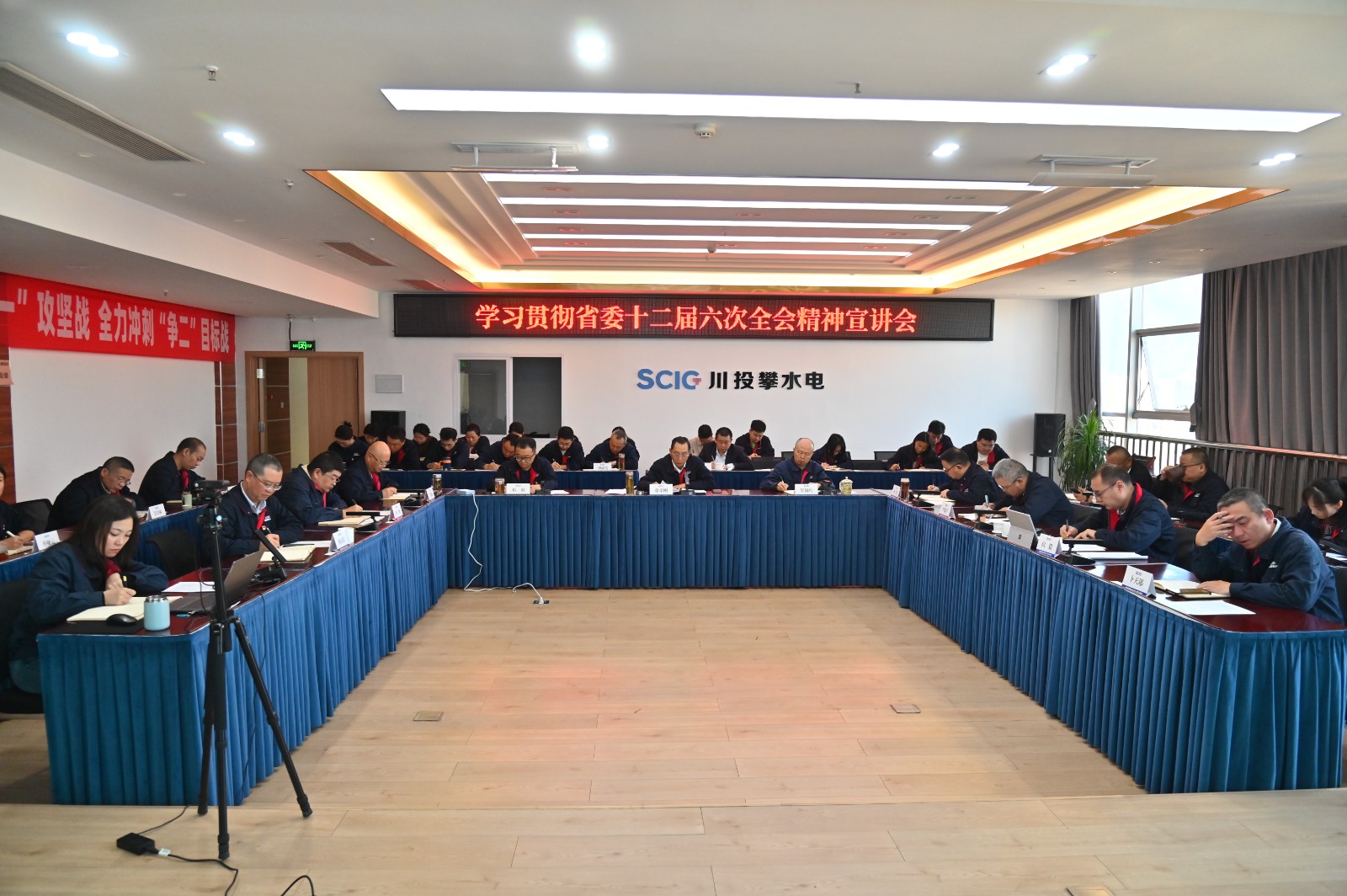 為深入學(xué)習(xí)貫徹省委十二屆六次全會(huì)精神,推動(dòng)全會(huì)精神在攀水電公司和銀江水電站落地落實(shí),11月24日上午,川投能源副總經(jīng)理,攀水電公司黨總支書(shū)記、董事長(zhǎng)徐孝剛開(kāi)展了省委十二屆六次全會(huì)精神宣講。會(huì)議以“現(xiàn)場(chǎng)+視頻”形式召開(kāi),公司和水電五局項(xiàng)目部全體黨員、干部職工代表共計(jì)50余人參加學(xué)習(xí)。