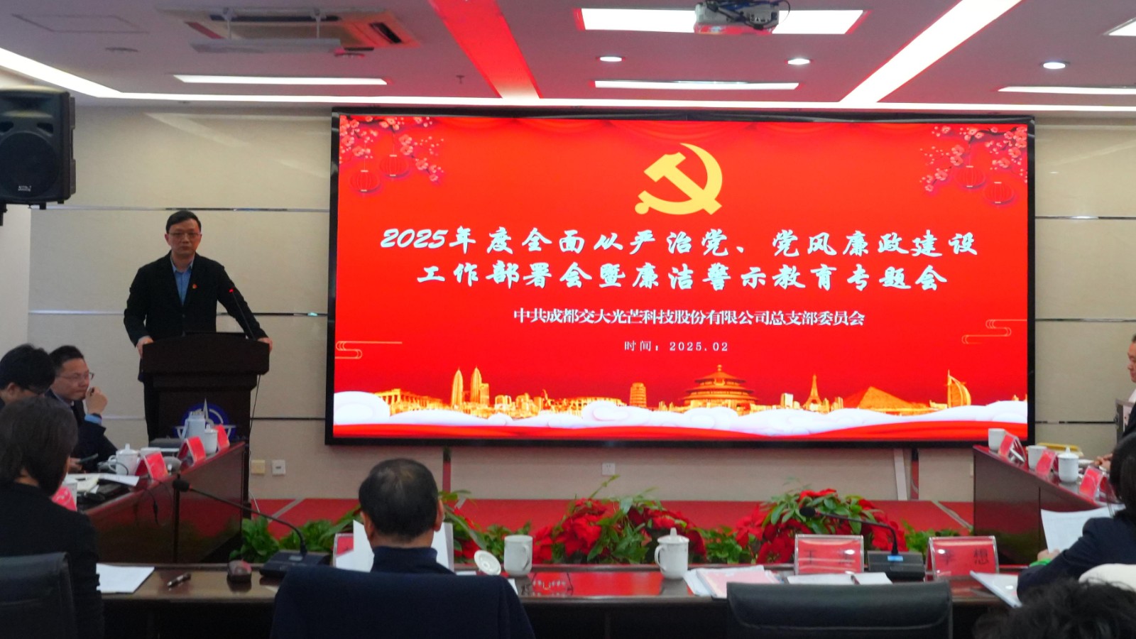 為深入學(xué)習(xí)貫徹二十屆中紀(jì)委四次全會(huì)精神,深入推進(jìn)公司黨風(fēng)廉政建設(shè)和反腐敗工作,2月21日,交大光芒黨總支召開(kāi)2025年度全面從嚴(yán)治黨、黨風(fēng)廉政建設(shè)工作部署會(huì)暨廉潔警示教育大會(huì),黨總支書(shū)記、常務(wù)副總經(jīng)理王濤主持會(huì)議,公司領(lǐng)導(dǎo)班子成員、主管及以上管理人員、黨員參加會(huì)議。
