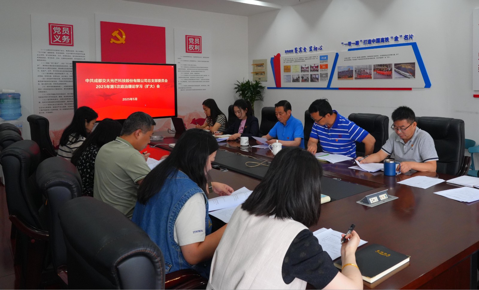 5月26日,交大光芒黨總支召開2025年第5次政治理論學(xué)習(xí)會。會議由黨總支書記、常務(wù)副總經(jīng)理王濤主持,黨總支委員、經(jīng)營班子成員以及各支部委員、黨群工作部、紀(jì)檢工作部負(fù)責(zé)人參加學(xué)習(xí)。