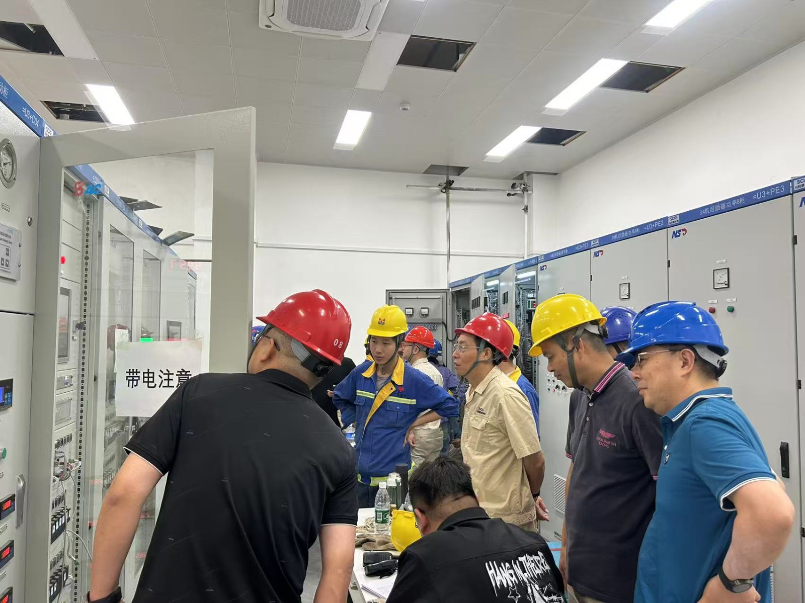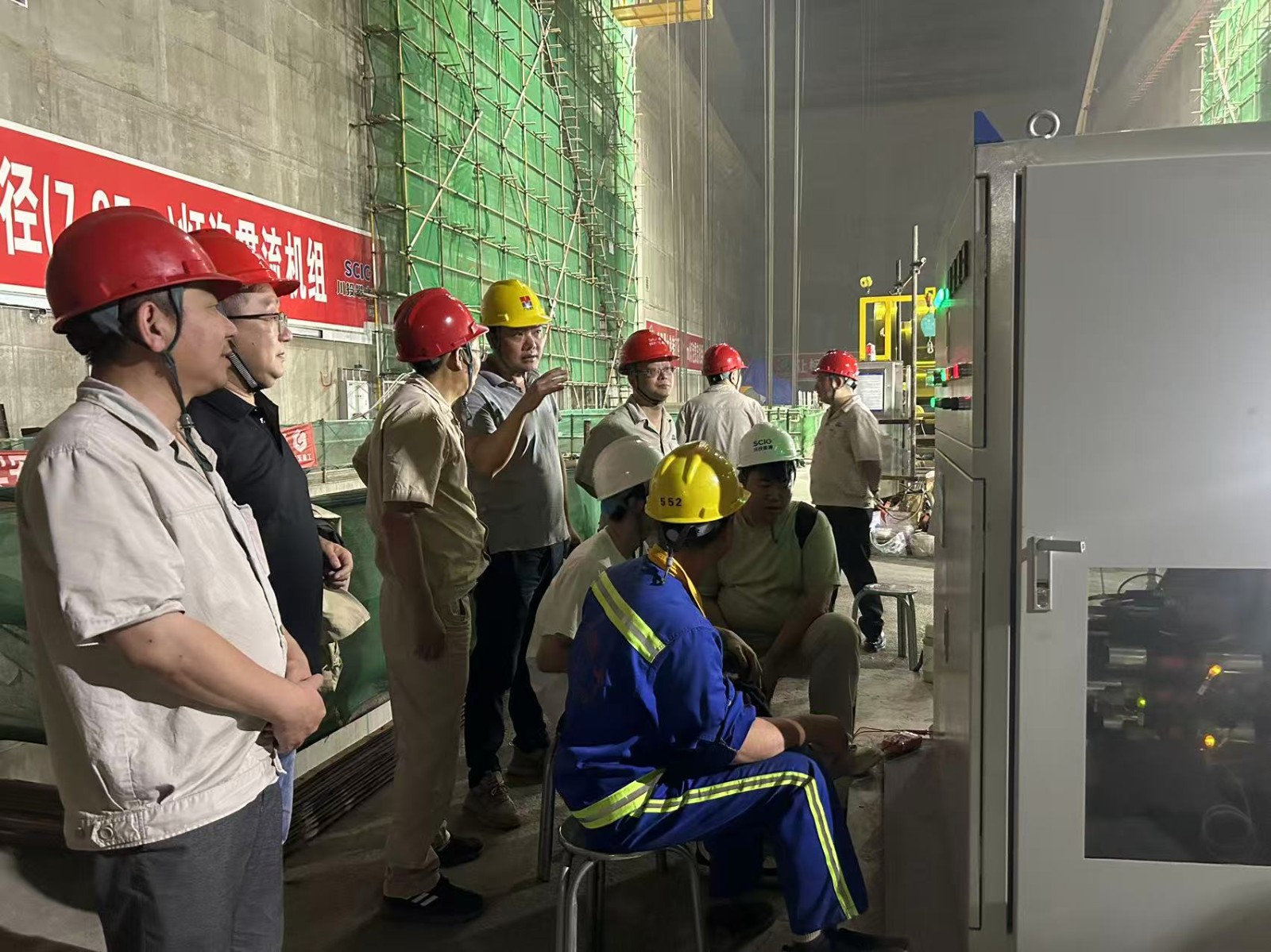 2025年攀枝花汛期比往年來的更早一些,為保障銀江水電站順利度汛和后續(xù)機(jī)組順利安裝,5月31日3號(hào)機(jī)組必須完成開機(jī)啟動(dòng),具備過流條件。為此,進(jìn)入5月以來,公司帶領(lǐng)各參建單位日夜奮戰(zhàn)在施工現(xiàn)場(chǎng),實(shí)行公司領(lǐng)導(dǎo)承包劃片進(jìn)行工作督導(dǎo),施工現(xiàn)場(chǎng)經(jīng)常深夜還能看見公司領(lǐng)導(dǎo)現(xiàn)場(chǎng)忙碌的身影,經(jīng)過不懈努力先后完成了3號(hào)機(jī)組主機(jī)、輔機(jī)、調(diào)速器、機(jī)組油、氣和水系統(tǒng)、計(jì)算機(jī)監(jiān)控系統(tǒng)、勵(lì)磁系統(tǒng)、繼電保護(hù)系統(tǒng)等設(shè)備的安裝調(diào)試工作。5月30日隨著尾水事故閘門充水閥緩慢打開,3號(hào)機(jī)組流道開始充水,5月31日檢查燈炮體、管形座、流道蓋板、導(dǎo)水機(jī)構(gòu)及各排水閥等各部位正常,3號(hào)機(jī)組各系統(tǒng)單體、聯(lián)調(diào)正常,隨著指揮長(zhǎng)徐孝剛一聲令下,3號(hào)機(jī)組手動(dòng)啟動(dòng),并成功升速至100%額定轉(zhuǎn)速,機(jī)組振動(dòng)、擺度、瓦溫等各項(xiàng)指標(biāo)優(yōu)良,機(jī)組運(yùn)行狀態(tài)穩(wěn)定,首次啟動(dòng)成功。