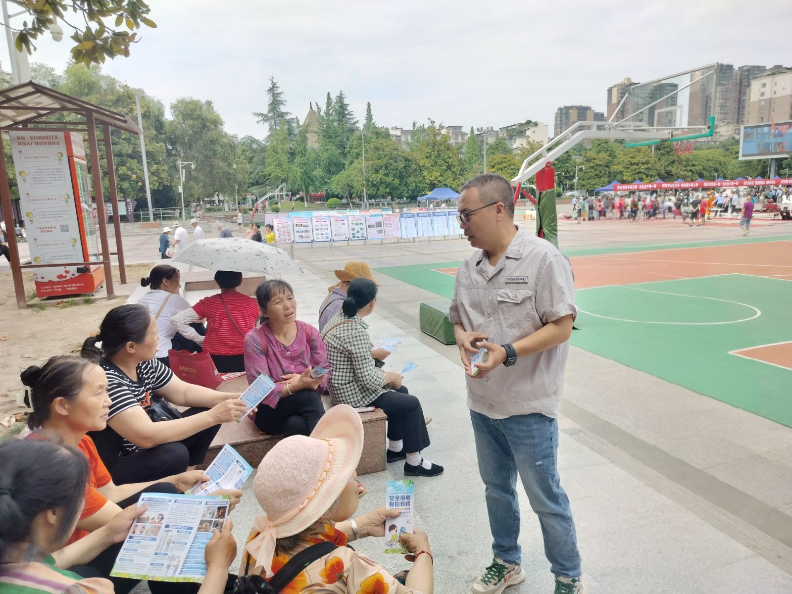 活動(dòng)現(xiàn)場,百花灘電廠的工作人員向在場群眾宣傳安全生產(chǎn)的重要性。一邊向群眾發(fā)放安全用電宣傳單,一邊耐心地向周邊群眾講解家庭用電安全措施、用電安全注意事項(xiàng)、觸電救護(hù)措施以及臨時(shí)安全用電原則等實(shí)用的安全知識(shí)。許多市民駐足聆聽,不時(shí)提出問題,工作人員都一一給予詳細(xì)解答,現(xiàn)場互動(dòng)氛圍熱烈。