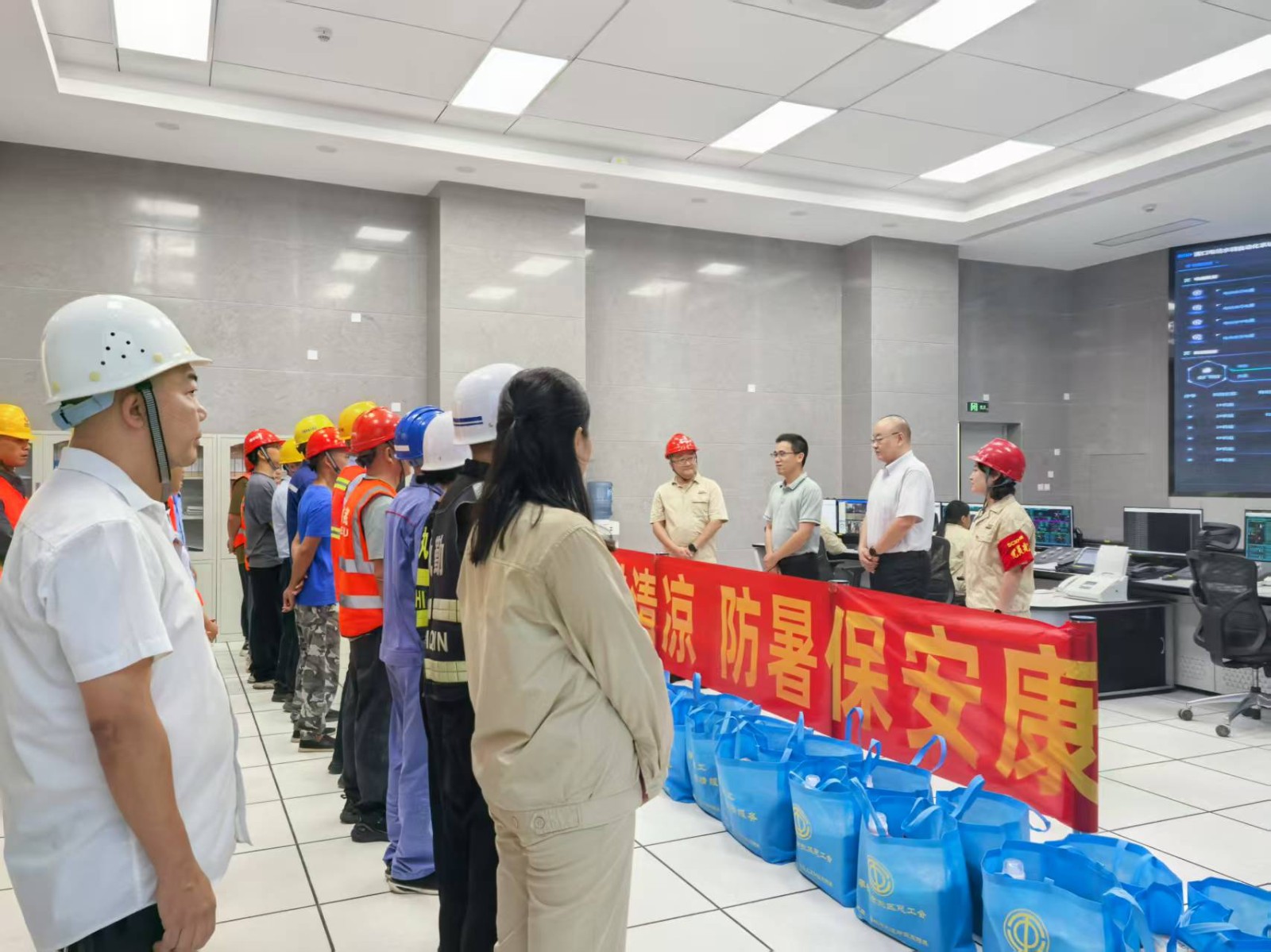 慰問現場,張平首先向銀江水電站一線人員表示親切的問候,對大家在高溫酷暑下堅守崗位、辛勤工作的精神表示高度的贊揚,叮囑大家一定要保證安全建設、安全生產,全面做好各類防護措施,注意自身安全和健康。希望攀水電公司能夠繼續(xù)發(fā)揚優(yōu)良傳統(tǒng),牢固樹立以人為本的理念,壓實安全管理責任,認真落實安全生產月活動要求,密切關注氣象預警,嚴格執(zhí)行高溫天氣作業(yè)規(guī)定,切實維護廣大職工的勞動安全健康權益,做好防暑降溫服務工作,在銀江水電站形成人人抓安全、人人擔責任的良好氛圍,切實筑牢安全生產防線。