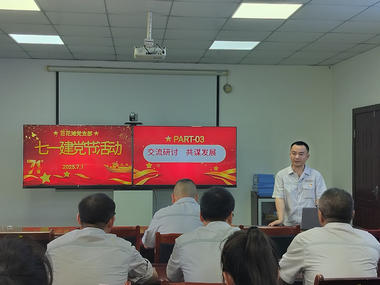 為慶祝中國共產(chǎn)黨成立104周年,7月1日,百花灘黨支部開展“奮進(jìn)新征程 建功新時(shí)代” 主題黨日活動(dòng),黨支部全體黨員、預(yù)備黨員、入黨積極分子齊聚一堂,以豐富形式共憶初心、共學(xué)理論、共謀發(fā)展。