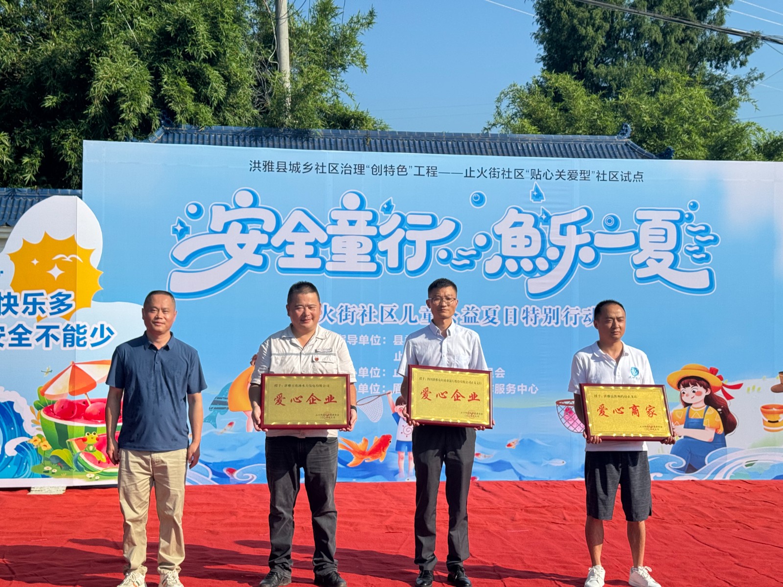 近日,止戈鎮(zhèn)止火街社區(qū)組織開展“歡樂童行?魚樂一夏” 活動(dòng)?;顒?dòng)中,止戈鎮(zhèn)止火街社區(qū)為四川洪雅百花灘水力發(fā)電有限公司授予“愛心企業(yè)”榮譽(yù)稱號。