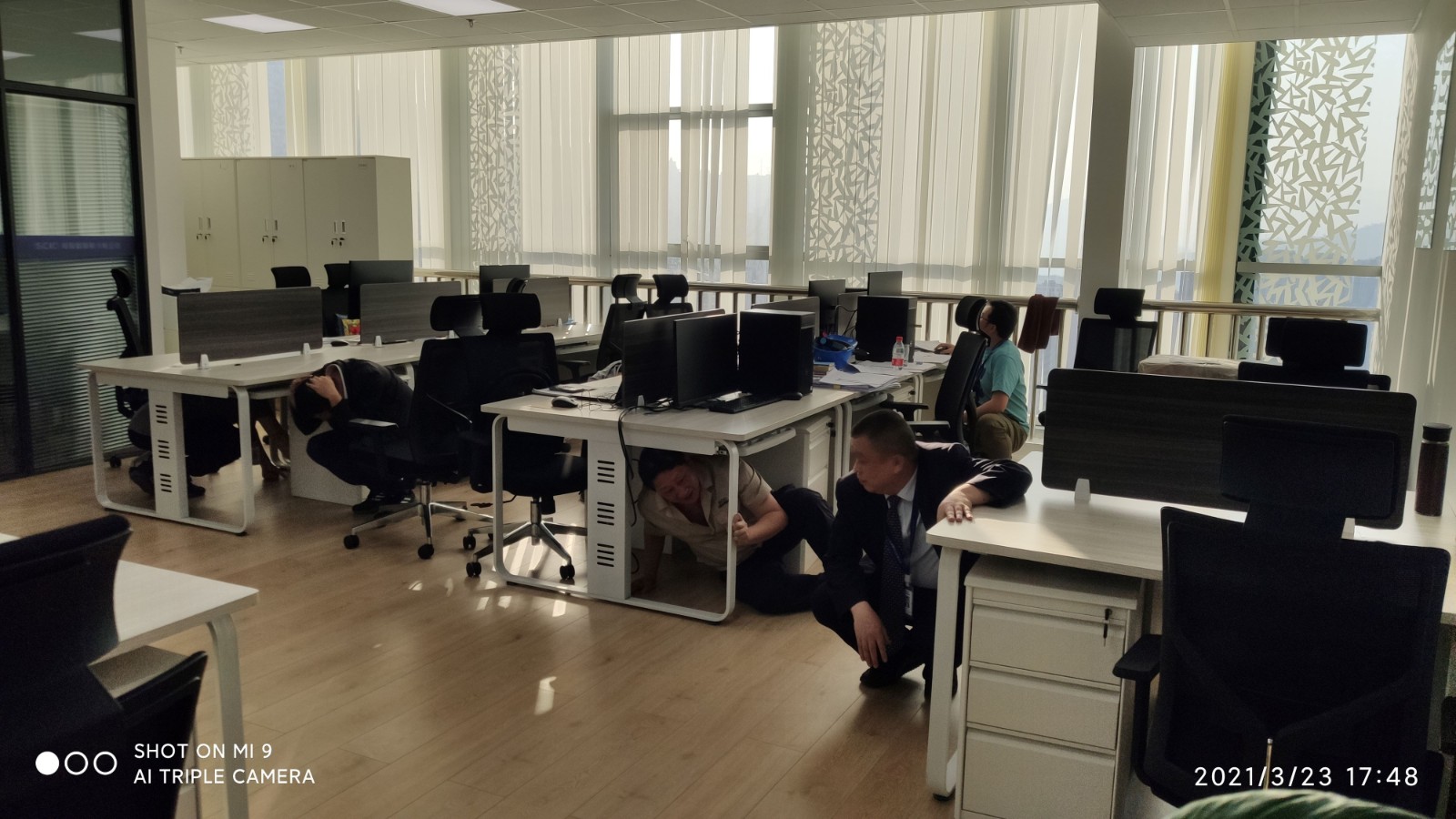 同日下午,攀水電公司在鋼城經(jīng)貿(mào)大廈A座辦公樓(26樓)會議室進行了地震災(zāi)害疏散演練培訓(xùn)。演練開始前,組織觀看了地震災(zāi)害應(yīng)急知識短視頻,并介紹講解了辦公樓緊急疏散通道和疏散路線,強調(diào)了避震原則以及緊急避震、緊急疏散、緊急搶救相關(guān)知識與注意事項。17點45分05秒,模擬演練發(fā)生4.8級地震,震源深度為12公里,震感強烈,各參演人員按照緊急避震原則,采取低頭、蜷曲身體、爬入辦公桌下等有利于避震的方式防護身體重要部位。主震結(jié)束后,公司第一時間啟動應(yīng)急響應(yīng),立即組織各參演人員按照既定的疏散路線安全撤離到達指定區(qū)域。